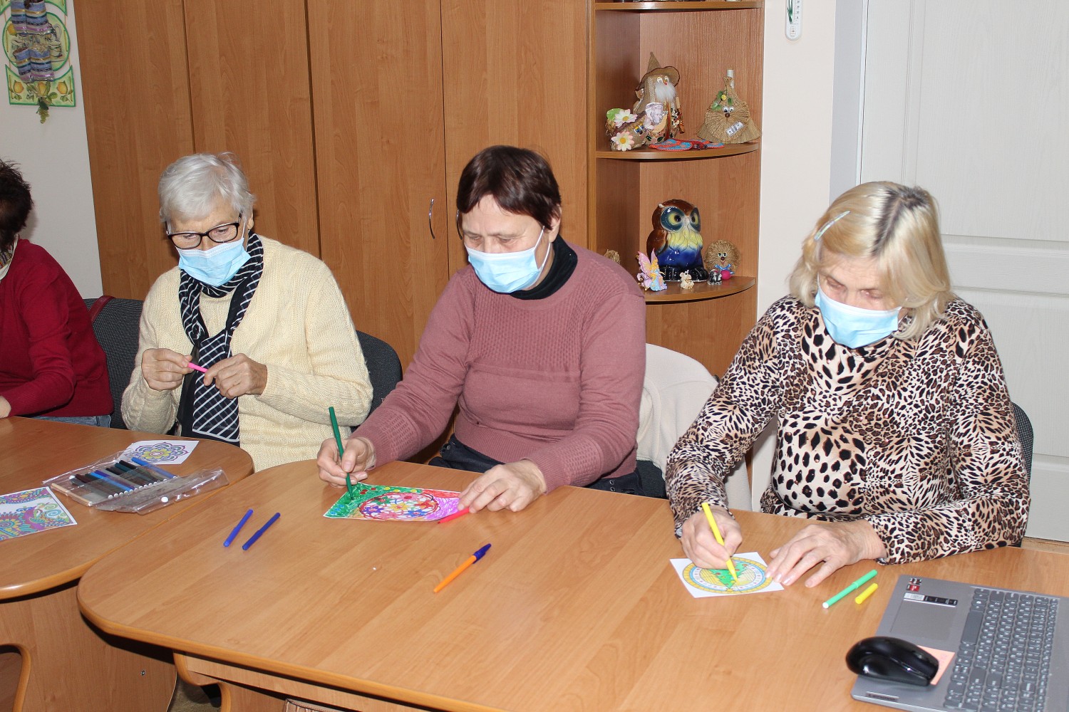 В декабре 2021 года, в рамках проекта «Старшее поколение», в отделении дневного пребывания граждан пожилого возраста и инвалидов ГБУ РК «ЦСО Раздольненского района», проходят занятия «Анти-стресс» с элементами тренинга и атр-терапии (раскрашивание антистрессовых раскрасок) с получателями социальных услуг и серебряными волонтерами.