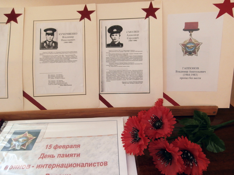 12 февраля 2016 года получатели социальных услуг отделения дневного пребывания граждан пожилого возраста и инвалидов ГБУ РК «ЦСО Раздольненского района» организованно посетили Районный дом культуры. Проведена встреча с воинами - интернационалистами «Слава есть память, которой не будет забвенья, и Слава которой не будет конца».