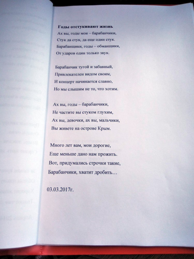 18 февраля 2022 года, в рамках проекта "Старшее поколение", сотрудниками отделения дневного пребывания граждан пожилого возраста и инвалидов ГБУ РК «ЦСО Раздольненского района» вручили раздольненской поэтессе и серебряному волонтеру Галине Смоляковой брошюру с её авторскими произведениями. Волонтер София Макарова сделала компьютерный набор текста, а сотрудники ГБУ РК «ЦСО Раздольненского района» на основе набранного текста изготовили брошюру, которая и была вручена автору.