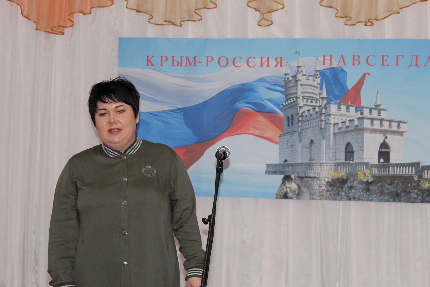 На мероприятии культорганизатор Ольга Петрив рассказала об историческом событии воссоединения Крыма с Россией и зачитала красивые стихи о Крыме. Под руководством аккомпаниатора Лидии Пацак, серебряные волонтеры - солисты и участники ансамбля «Беспокойные сердца» исполнили песни: «Наш Крым», «Как не любить мне эту землю», «Льются песни крылатые», «Какая песня без баяна», «Моя Москва», «Крым».