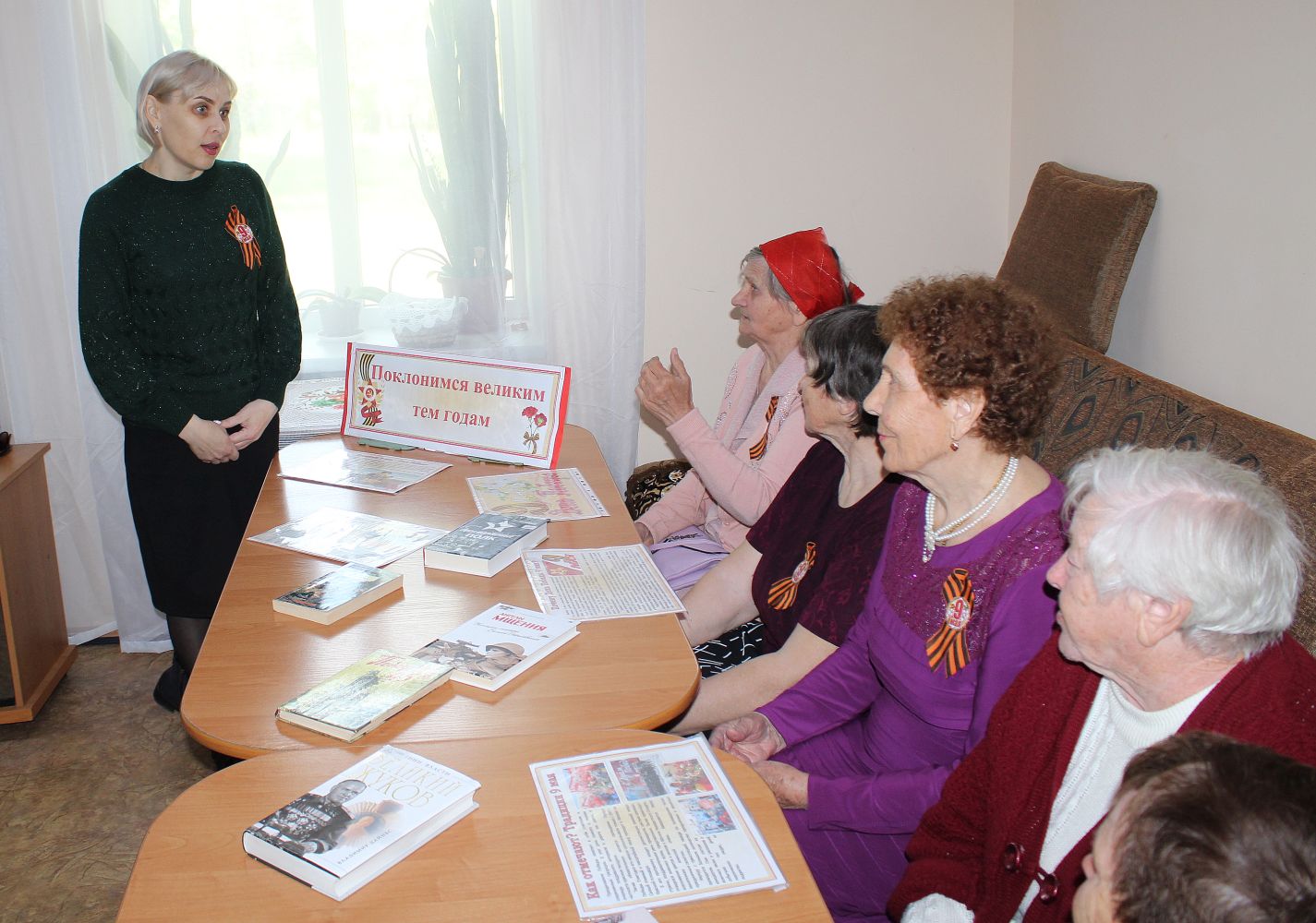 6 мая, в преддверии праздника Великой Победы в отделении дневного пребывания граждан пожилого возраста и инвалидов ГБУ РК «ЦСО Раздольненского района» библиотекарь отдела обслуживания Раздольненской центральной районной библиотеки им. А.И. Домбровского Светлана Чуприна провела беседу с получателями социальных услуг «Наша победная весна».