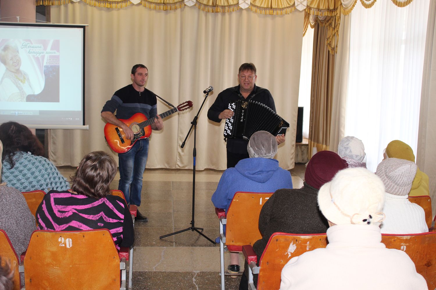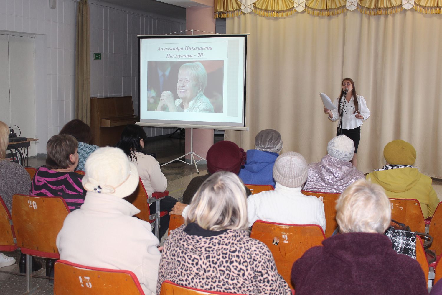 Для зрителей мероприятия были проведены конкурсы «Музыка и кино» и «Угадай мелодию», в которых получатели социальных услуг принимали самое активное участие. Апогеем мероприятия стала игре-караоке по мотивам песен Александры Пахмутовой, в ходе которой все присутствующие совместно исполнили хорошо знакомые и любимые песни композитора.