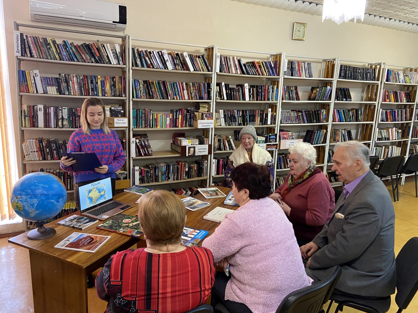 Библиотекарь отдела обслуживания рассказала присутствующим о том, в каком удивительном уголке света мы живем. Гости мероприятия услышали о том, что Крымский полуостров по праву считается одним из самых интересных мест для посещения в Российской Федерации. Присутствующие поделились с библиотекарем своими мыслями – что, прожив всю жизнь в Крыму, некоторые из присутствующих посетили мало интересных мест и пообещали, что исправят это, вдохновившись сегодняшним заседанием. В завершение мероприятия, библиотекарь вместе с гостями мероприятия посмотрели видеоролик о самых интересных достопримечательностях Крыма, чтобы ещё раз продемонстрировать, в каком чудесном месте мы все живем.