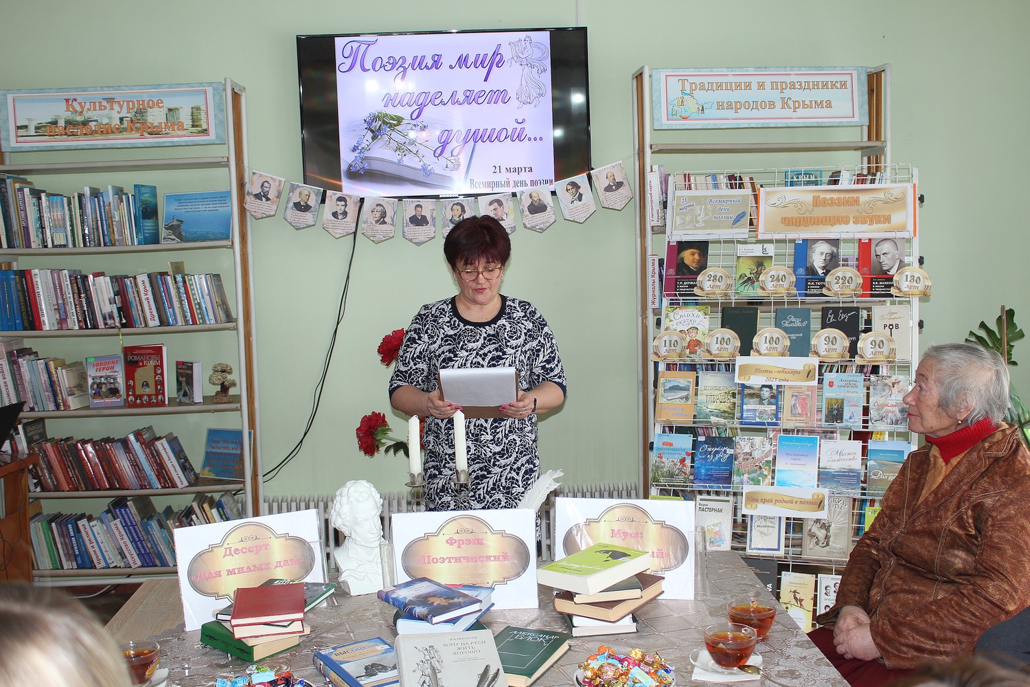 21 марта 2023 года получатели социальных услуг отделения дневного пребывания граждан пожилого возраста и инвалидов ГБУ РК «ЦСО Раздольненского района» посетили мероприятие, посвященное Всемирному Дню поэзии, которое проходило в читальном зале Раздольненской центральной районной библиотеки им. А.И. Домбровского.