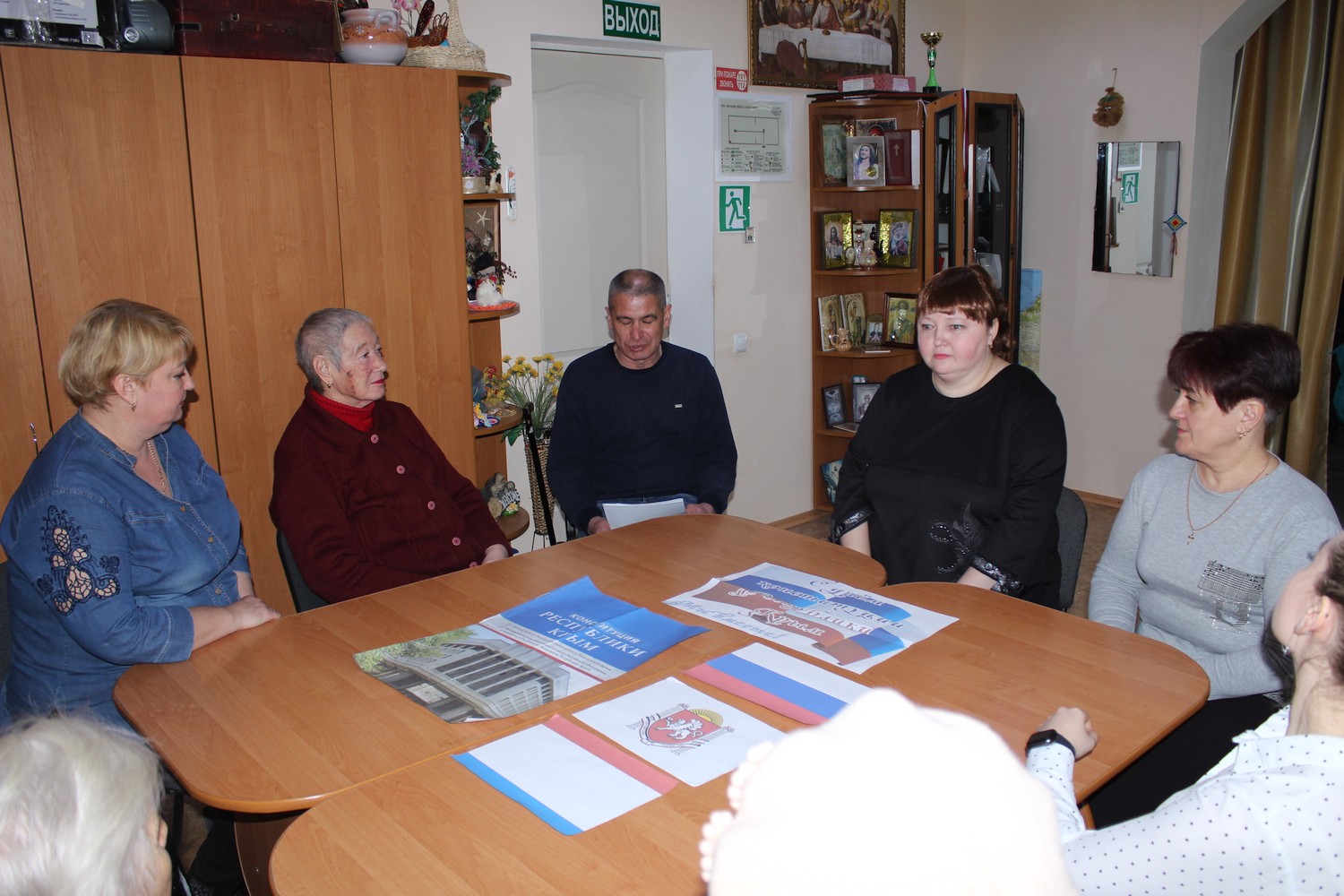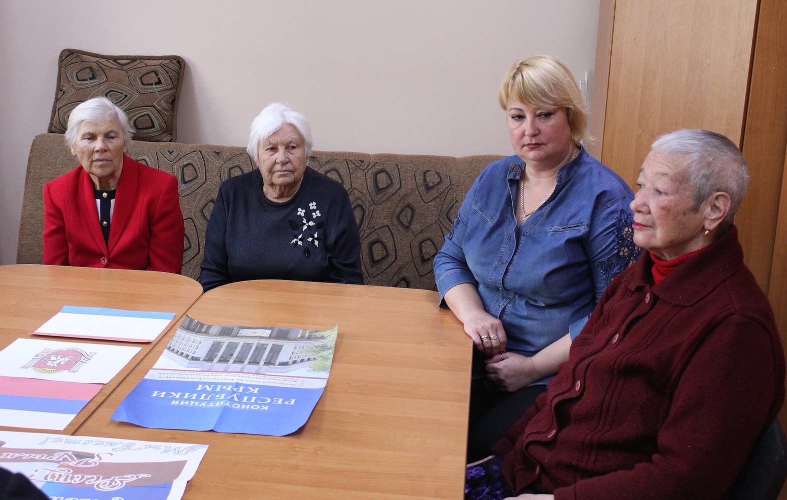 11 апреля 2023 года, в рамках проекта «Старшее поколение», в отделении дневного пребывания граждан пожилого возраста и инвалидов ГБУ РК «ЦСО Раздольненского района» состоялась тематическое мероприятие в форме беседы с получателями социальных услуг, посвященное Дню Конституции Республики Крым.