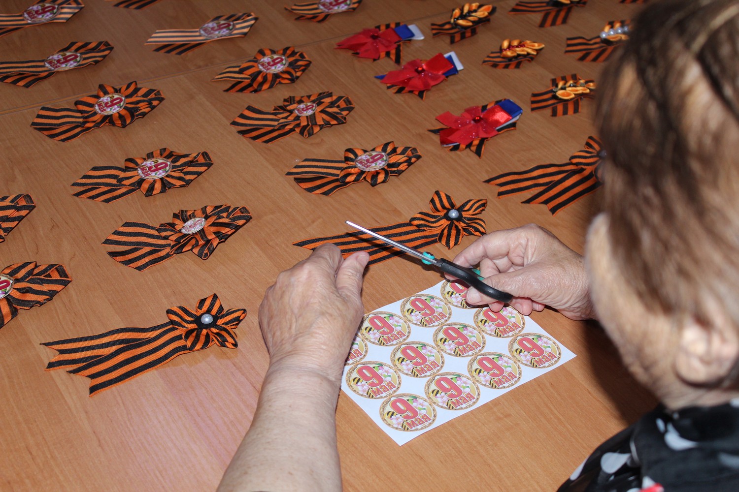 28 апреля 2023 года, в рамках проекта «Старшее поколение», в отделении дневного пребывания граждан пожилого возраста и инвалидов ГБУ РК «ЦСО Раздольненского района» специалистом по социальной работе Ольгой Тюнеговой для получателей социальных услуг и серебряных волонтеров был проведен мастер-класс «Брошь из георгиевской ленточки», на котором присутствующие волонтеры и получатели социальных услуг своими руками с любовью изготовили такие замечательные сувениры для ветеранов ВОВ.