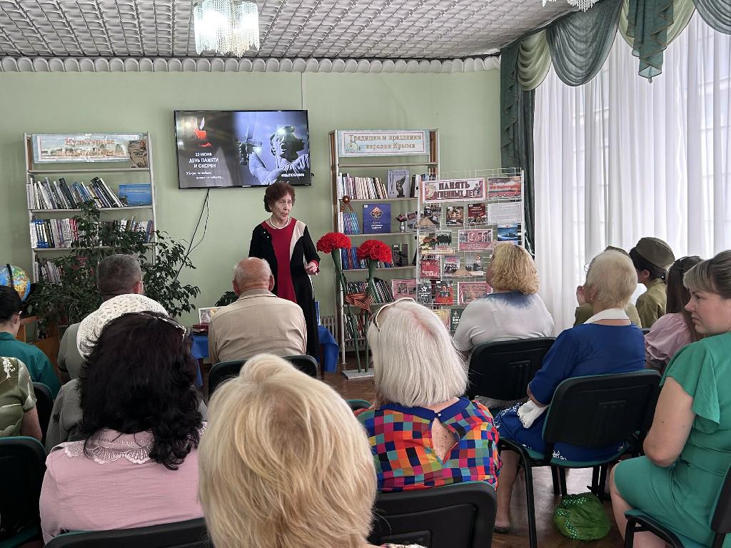 21 июня 2023 года в рамках проекта «Старшее поколение» в преддверии Дня памяти и скорби получатели социальных услуг отделения дневного пребывания граждан пожилого возраста и инвалидов ГБУ РК «ЦСО Раздольненского района» посетили Раздольненскую центральную районную библиотеку им. А.И. Домбровского и приняли участие в мероприятии «Помнить, чтобы жить».