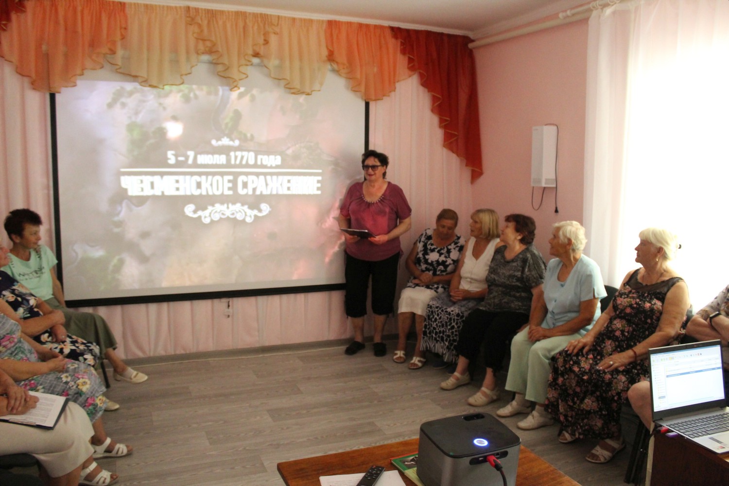 Культорганизатор Лидия Пацак рассказала получателям социальных услуг и серебряным волонтерам о Чесменском сражении и о тех исторических последствиях, которые повлекла за собой победа русского флота в этой битве.