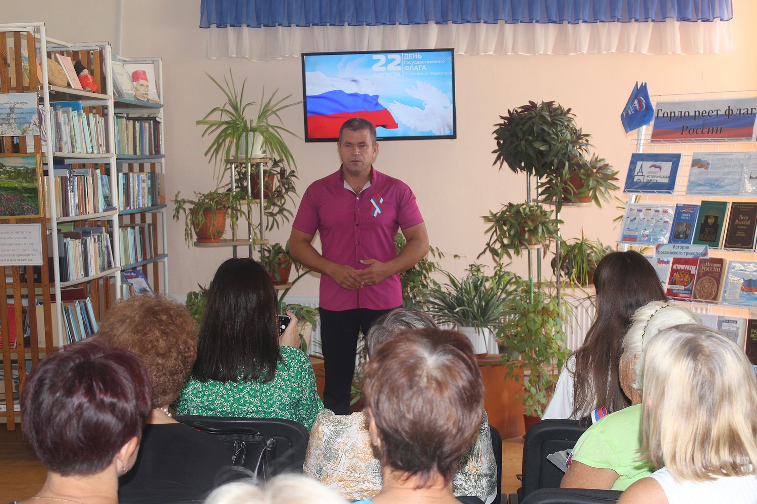 22 августа 2023 года, в рамках проекта «Старшее поколение», в День празднования Государственного флага Российской Федерации, получатели социальных услуг отделения дневного пребывания граждан пожилого возраста и инвалидов ГБУ РК «ЦСО Раздольненского района» посетили мероприятие «Под флагом единым», которое проводилось в Раздольненской центральной районной библиотеке им. А. И. Домбровского.