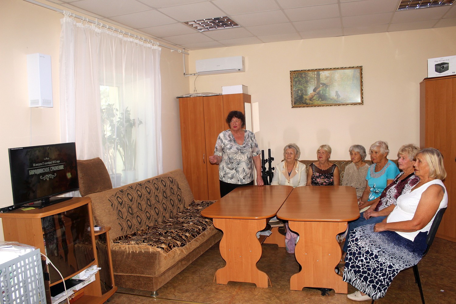 Культорганизатор Лидия Пацак рассказала получателям социальных услуг о ходе Бородинского сражения, о влиянии результатов этого сражения на дальнейший ход войны 1812 года. Рассказ культорганизатора сопровождался показом тематических видеороликов.