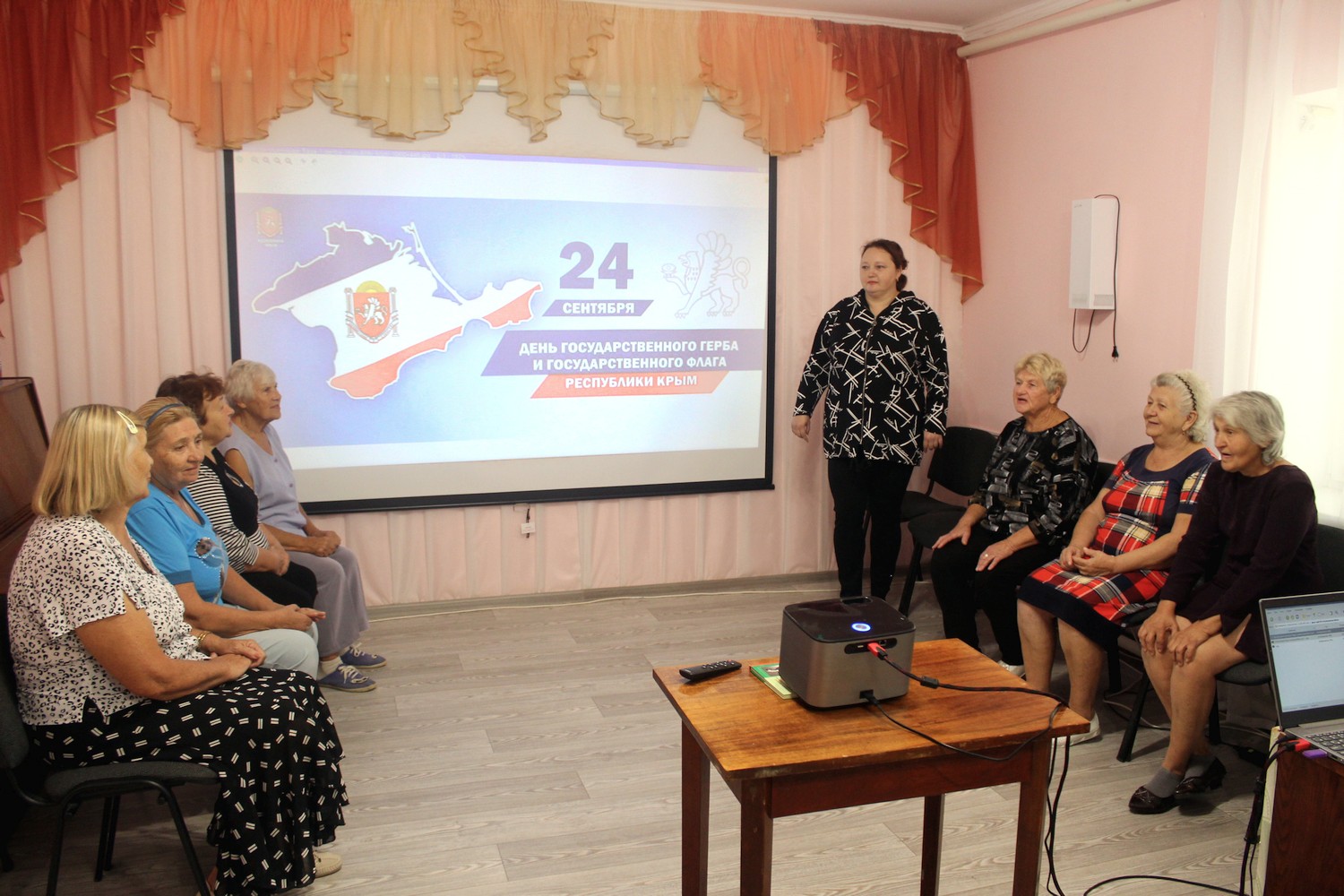 22 сентября 2023 года, в рамках партийного проекта «Старшее поколение», в отделении дневного пребывания ГБУ РК «ЦСО Раздольненского района» прошло тематическое мероприятие для получателей социальных услуг, посвященное Дню Государственного герба и Государственного флага Республики Крым.
