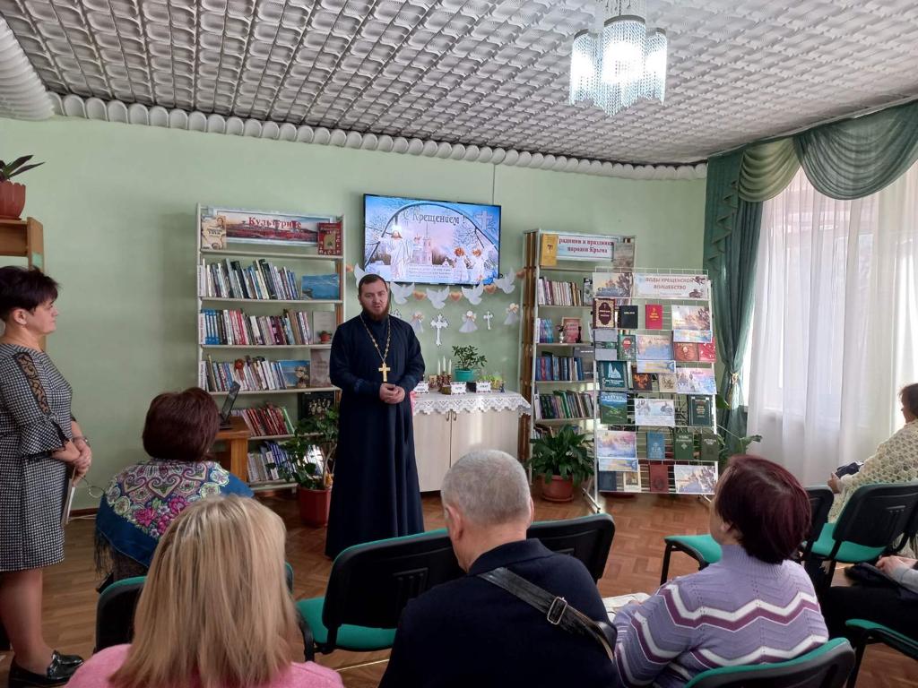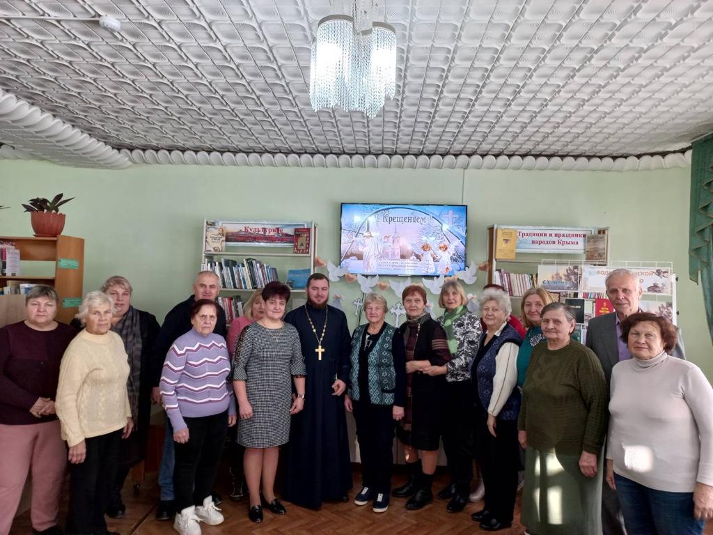 17 января 2024 года получатели социальных услуг отделения дневного пребывания ГБУ РК «ЦСО Раздольненского района, накануне православного праздника Крещение Господне, посетили мероприятие «Таинство крещения», которое проходило в читальном зале Раздольненской центральной районной библиотеке им. А.И. Домбровского. 17 января 2024 года получатели социальных услуг отделения дневного пребывания ГБУ РК «ЦСО Раздольненского района, накануне православного праздника Крещение Господне, посетили мероприятие «Таинство крещения», которое проходило в читальном зале Раздольненской центральной районной библиотеке им. А.И. Домбровского.