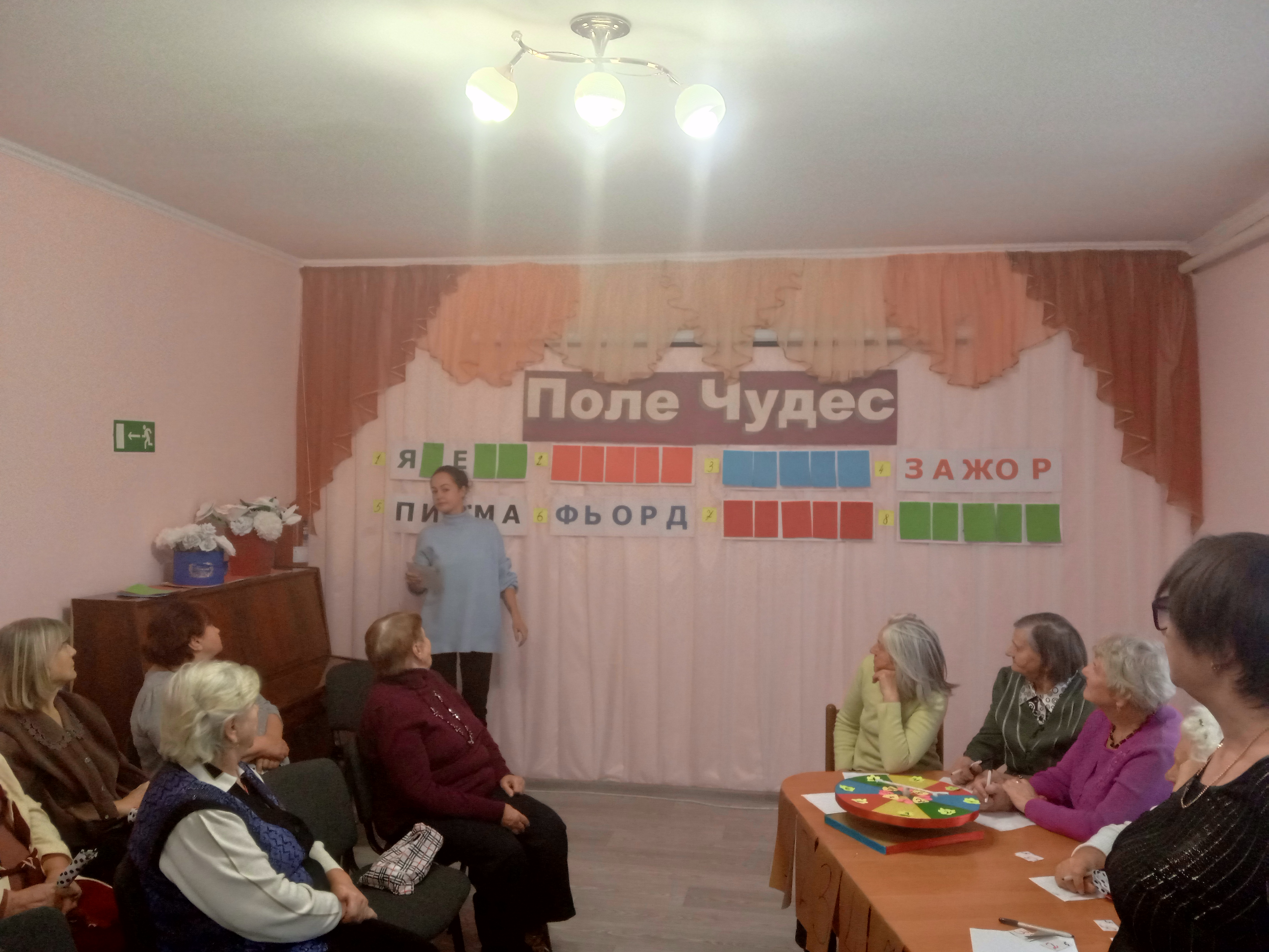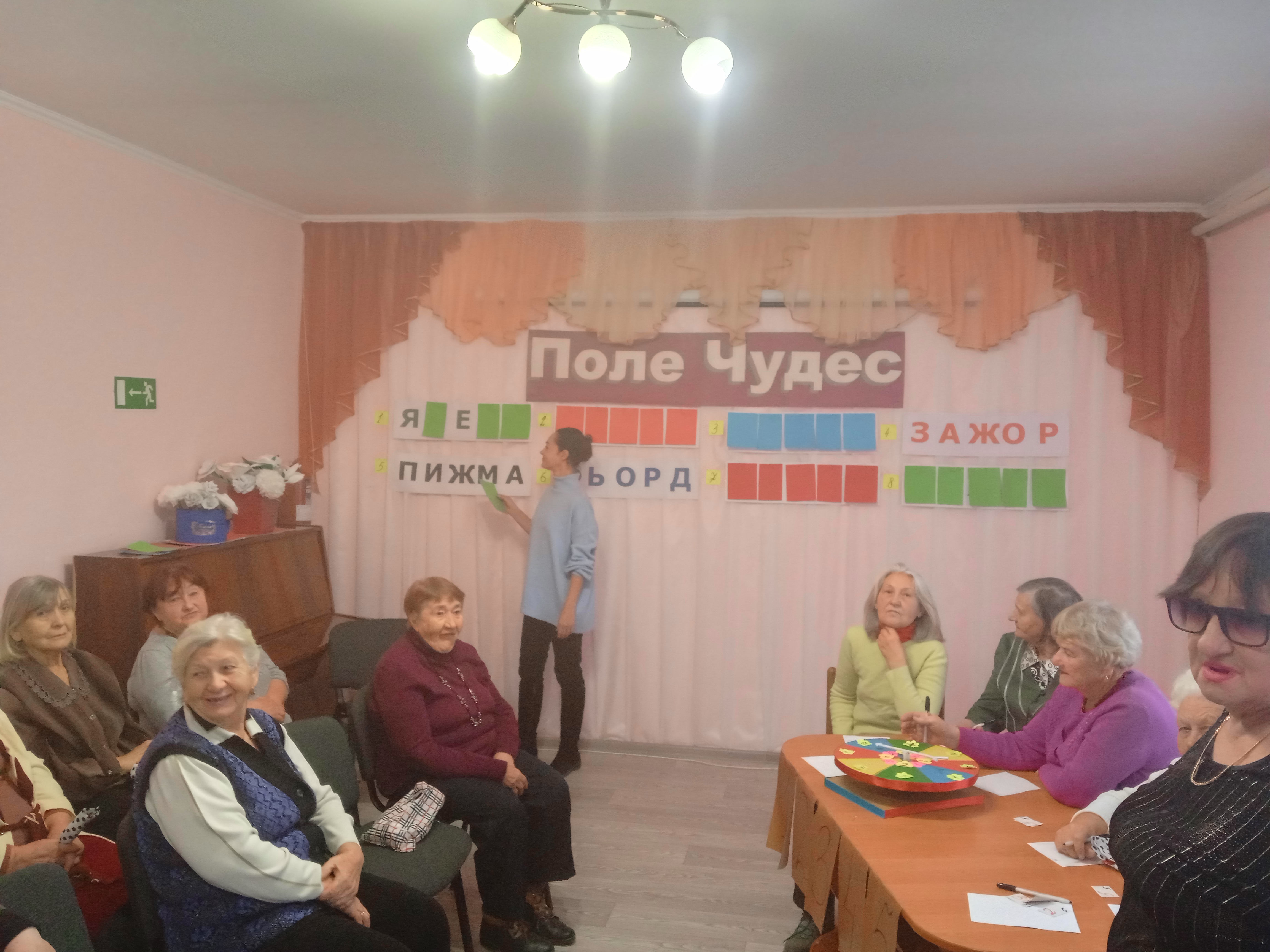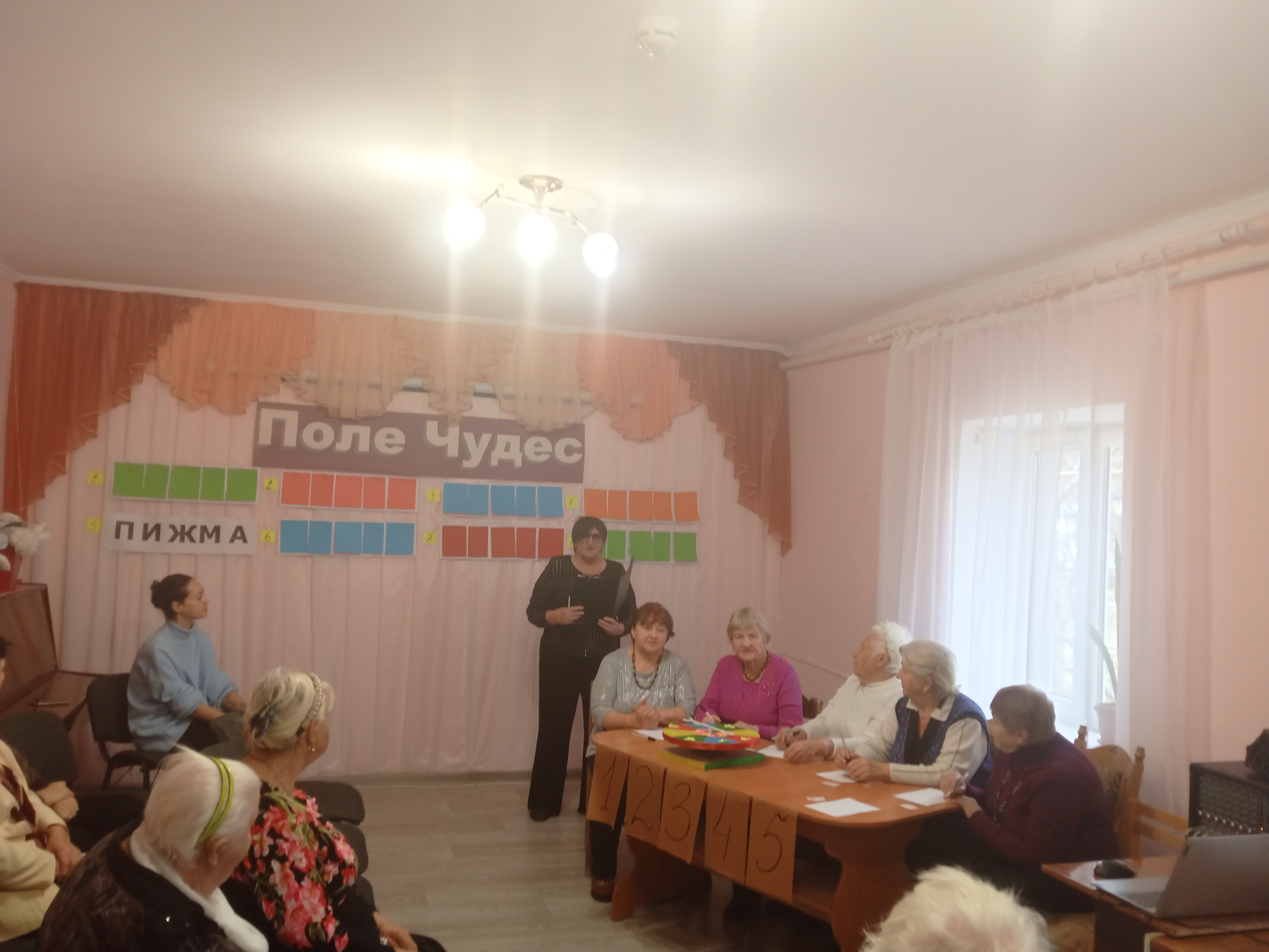 В этот день сотрудники отделения дневного пребывания организовали и провели для граждан пожилого возраста и инвалидов культурно-познавательную программу «Поле чудес», по мотивам популярной телевизионной передачи, которая уже много лет покоряет сердца телезрителей.