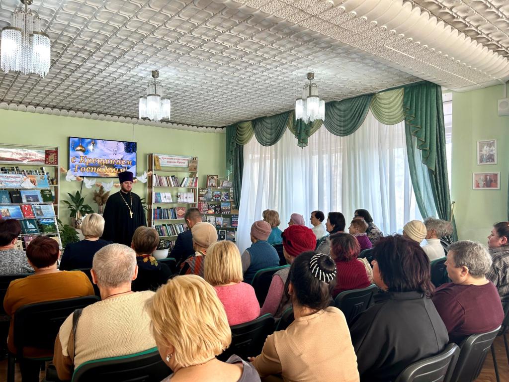 16 января 2025 года накануне православного праздника Крещение Господне получатели социальных услуг отделения дневного пребывания граждан пожилого возраста и инвалидов ГБУ РК «ЦСО Раздольненского района» посетили мероприятие «Крещение пришло - морозы принесло», которое состоялось в читальном зале Раздольненской центральной районной библиотеки им. А.И. Домбровского.
