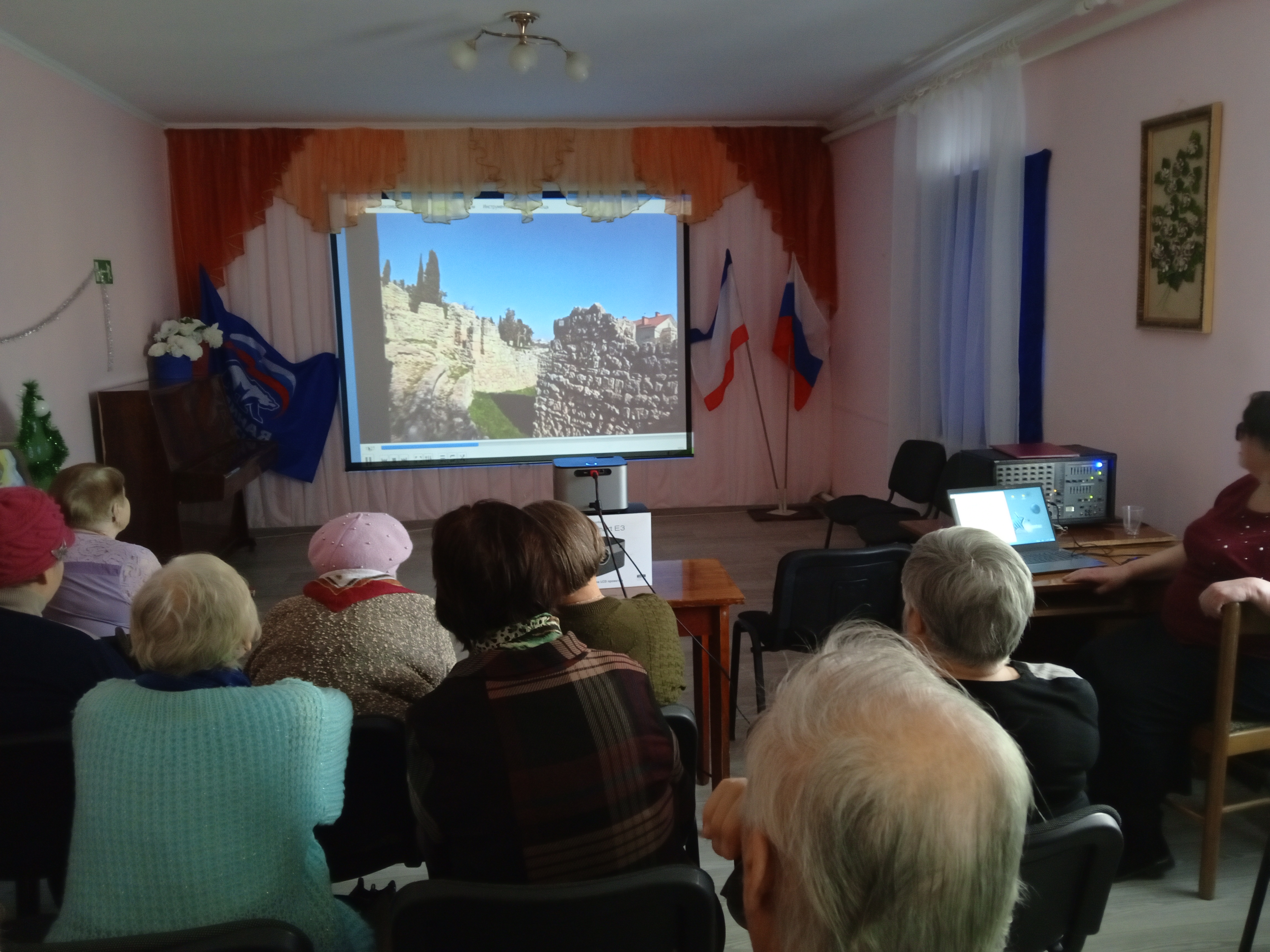 В начале мероприятия культорганизатор Лидия Пацак поздравила всех присутствующих с Днем Республики Крым и рассказала историю Крыма. В ходе беседы присутствующие делились своими воспоминаниями о развитии любимого полуострова. Далее получатели социальных совершили онлайн - путешествие по музею заповеднику «Херсонес Таврический» и Новому Херсонесу.