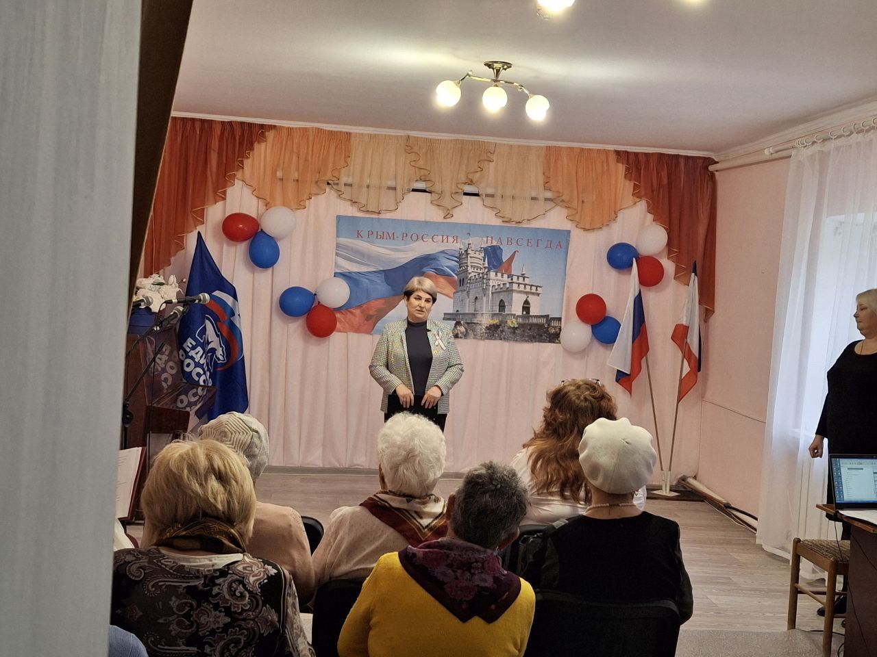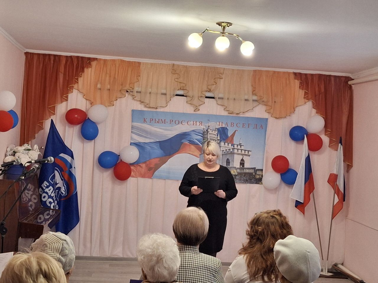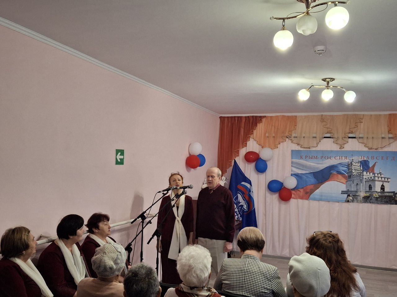 17 марта 2025 года, в рамках партийного проекта «Старшее поколение», в отделении дневного пребывания граждан пожилого возраста и инвалидов ГБУ РК «ЦСО Раздольненского района» состоялось торжественное мероприятие, с праздничным концертом, посвященное одиннадцатой годовщине воссоединения Крыма с Россией.