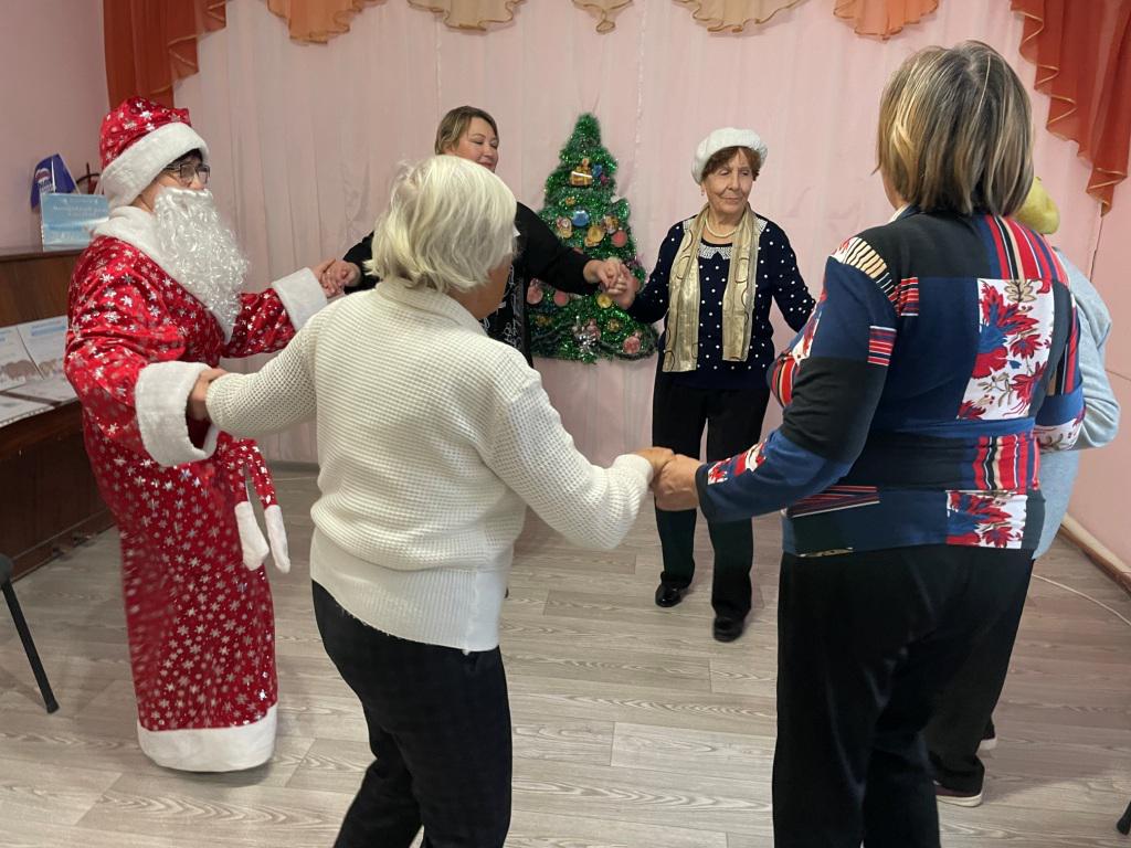 В ходе проведения праздника присутствующие водили хоровод, отгадывали загадки, пели новогодние песни, поиграли в игры «Ёлочки — Пенёчки», «Ручеек», разгадывали загадки по новогодним фильмам.