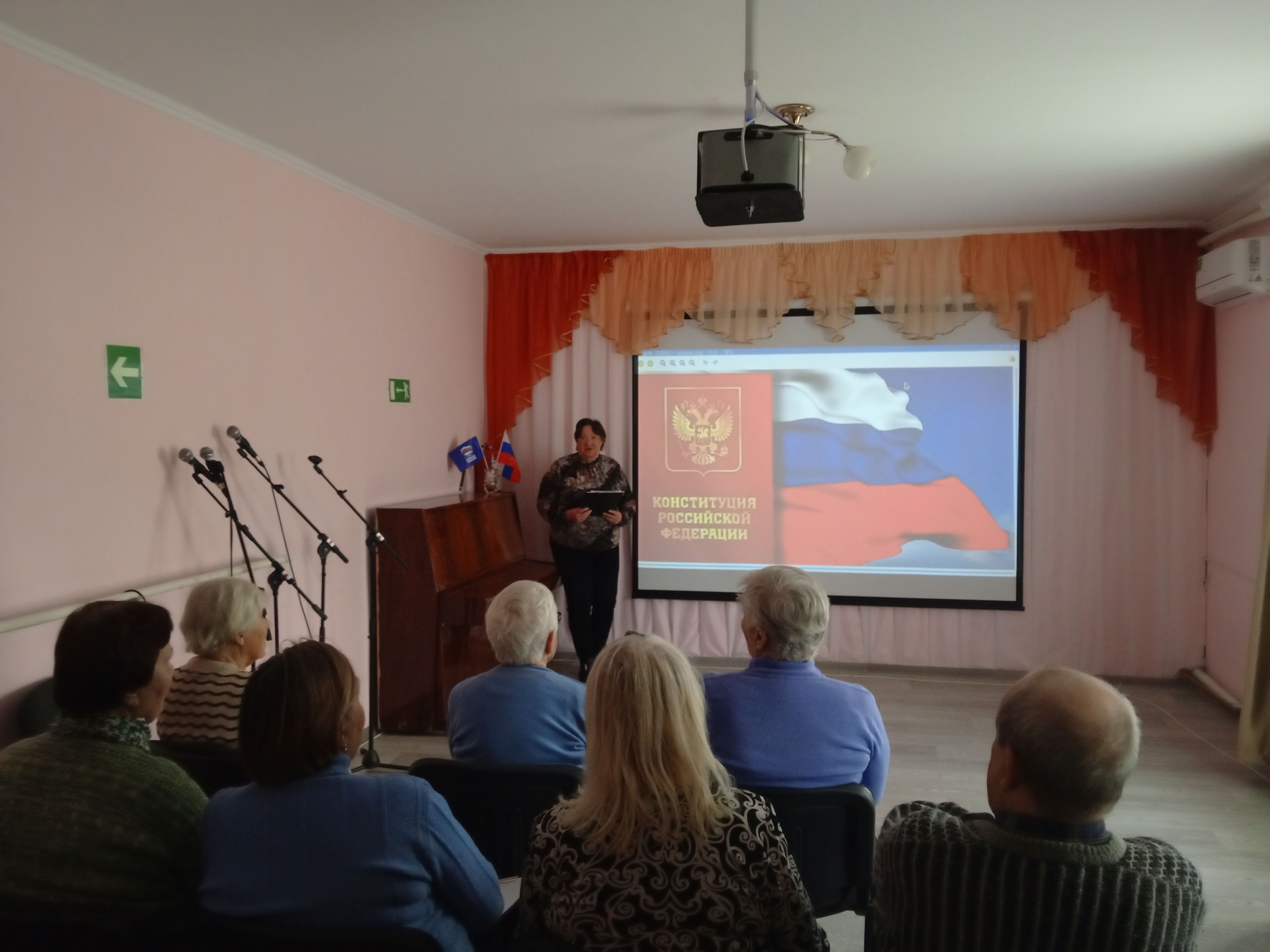 Культорганизатор Лидия Пацак рассказала присутствующим получателям социальных услуг об учреждении государственного праздника — Дня Конституции России, а также историю создания и принятия ныне действующей Конституции Российской Федерации.