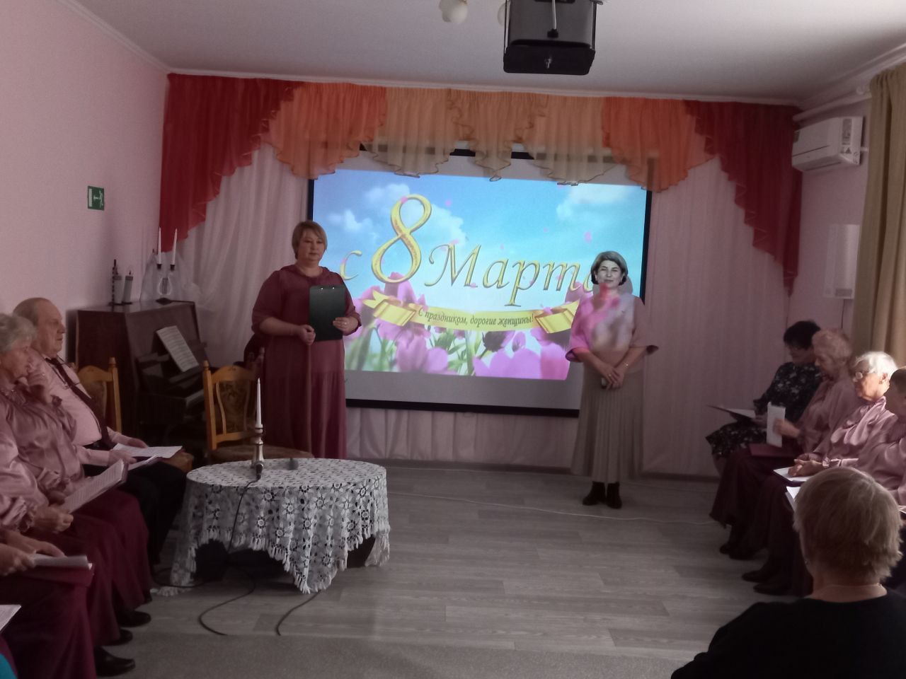 На праздничном мероприятии присутствующие принимали поздравления в исполнении серебряных волонтеров и участников вокального ансамбля «Беспокойные сердца», прозвучали музыкальный подарки в виде любимых романсов. В завершении мероприятия Секретарь Раздольненского МО партии «Единая Россия» Татьяна Петровна Вышинская преподнесла получателям социальных услуг и серебряным волонтерам сладкие угощения к чаепитию. Дорогие женщины в этот замечательный, любимый всеми весенний праздник, желаем вам здоровья, долгих, счастливых лет жизни!