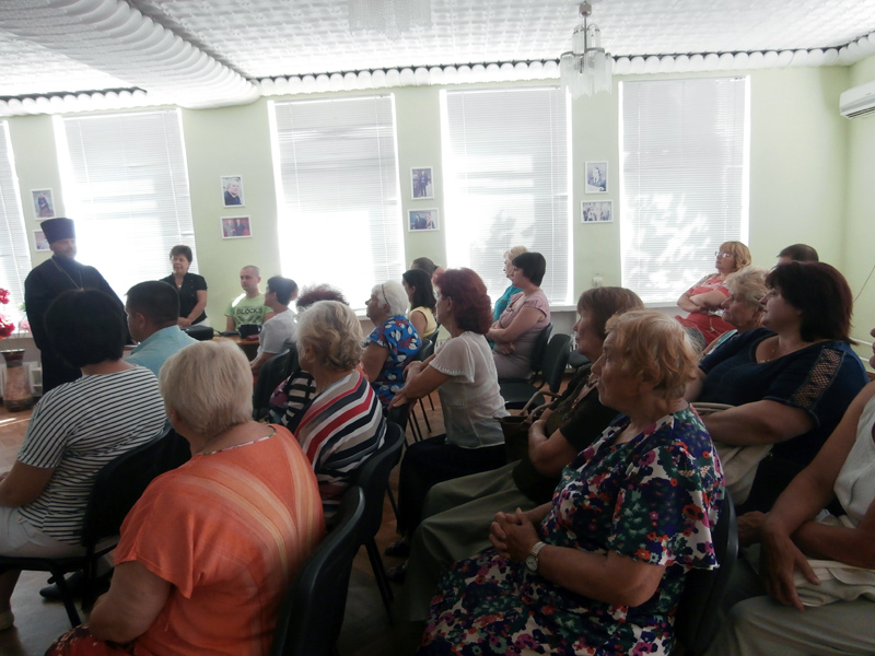 Священник храма Святителя Тихона Московского иерей Олег Колбанов рассказал получателями социальных услуг отделения дневного пребывания граждан пожилого возраста и инвалидов ГБУ РК "ЦСО Раздольненского района" интересные факты из истории Крещения Руси, о важности сохранения веры в Бога и необходимости соблюдения главных добродетелей христианина: любить, прощать. Он поздравил всех присутствующих и пожелал всем мира, добра, благополучия в семьях.