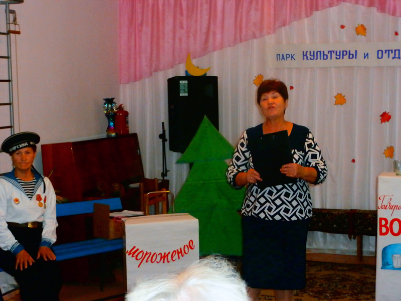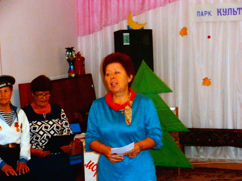 Ведущая Раиса Галимская поприветствовала и поздравила всех присутствующих с праздником и предоставила слово Надежде Окунской начальнику отдела Пенсионного Фонда РФ Раздольненского района, которая поздравила всех пожилых людей и сказала, что в старости есть свои преимущества: опыт, мудрость, уважение детей и внуков, социальная защита.