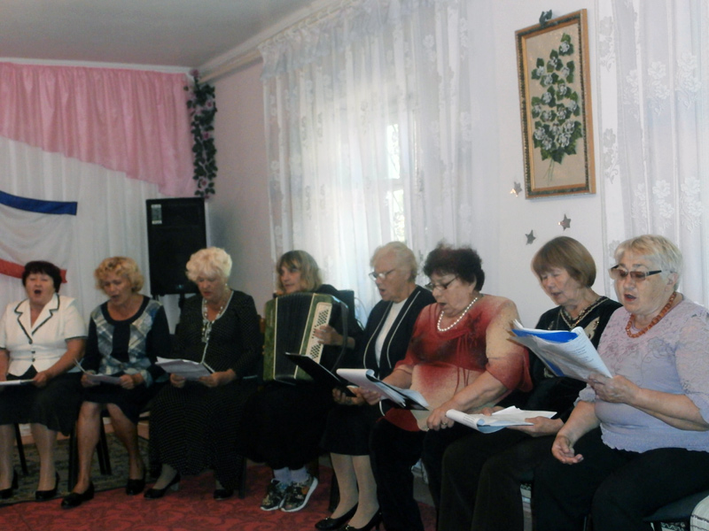 Граждан пожилого возраста и инвалидов порадовали своим пением участники ансамбля "Беспокойные сердца", исполнявшие песни "А у нас в Раздольном", "Песня о Родине", "Степь" и др.
