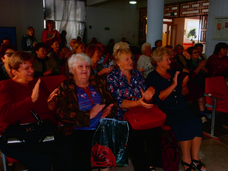 Своим пением и музыкальным сопровождением радовали зрителей Сергей Папченко, Елена Терещенко и Олег Живов. Бурными аплодисментами встречали пожилые люди детей вокального ансамбля "Ладушки", музыкальный руководитель Елена Терещенко. Их песни и танцы приводили в восторг слушателей. Нежно, чувственно звучала песня "Посидим по-хорошему" в исполнении коллектива ансамбля "Беспокойные сердца".
