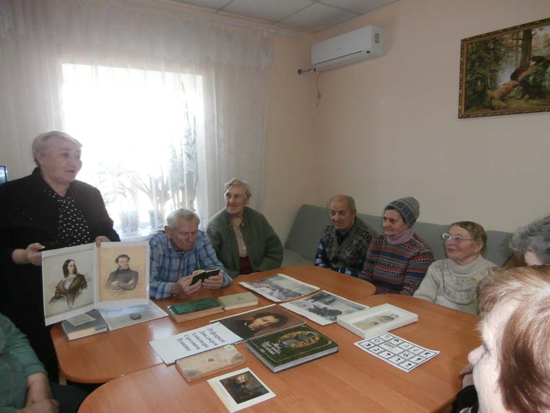 Во время беседы получателями социальных услуг Людмилой Протопоповой, Зинаидой Погорелко и Галиной Смоляковой были прочитаны стихотворения А.С.Пушкина «Зимнее утро», «Слабо мерцает огарок свечи», «Смерть поэта».