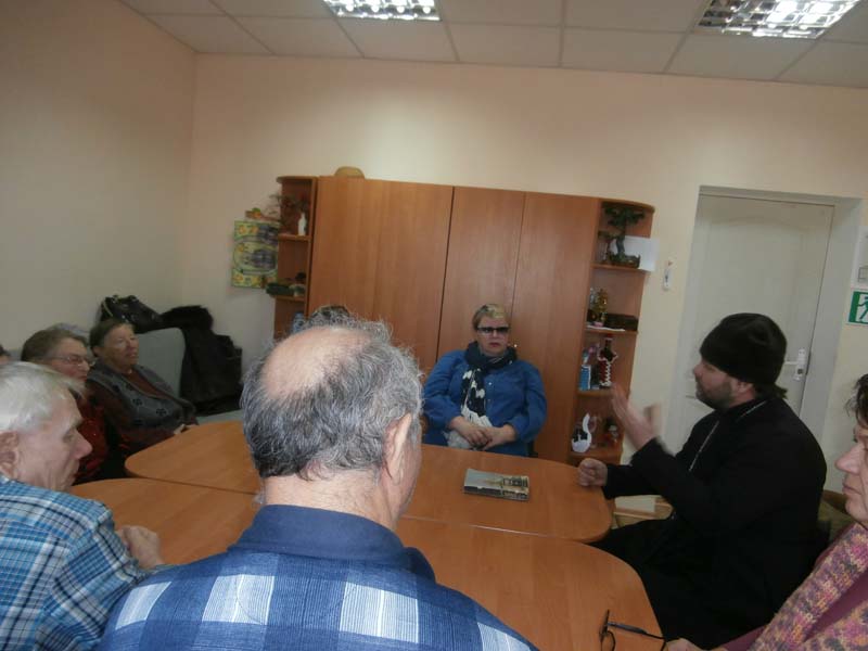 Стало традицией еженедельные встречи с иереем Олегом Колбановым, батюшкой церкви Святого Тихона Московского. На этих встречах священник помогает получателям социальных услуг найти верные духовные ориентиры в непростых условиях сегодняшней жизни, именно православная христианская вера учит человека милосердию, состраданию, любви к ближнему, желанию поделиться наболевшим, помогать тем, кому трудно. Всегда дает батюшка исчерпывающие ответы на поставленные ему вопросы.