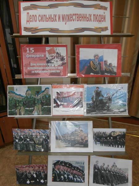 09.02.2017 г. в отделении дневного пребывания граждан пожилого возраста и инвалидов ГБУ РК «ЦСО Раздольненского района», для получателей социальных услуг, проведен историко-патриотический час «Где только нет сынов твоих, Россия», посвященный Дню памяти о россиянах, исполнявших служебный долг за пределами Отечества. На мероприятии присутствовала заведующая дневным отделением Оксана Красовская, которая сказала, что начиная с 2011года в России отмечается важная памятная дата — День памяти о россиянах, исполнявших служебный долг за пределами Отечества. Библиотекарь районной библиотеки им.Домбровского Галина Новикова оформила иллюстрированную выставку «Дело сильных и мужественных людей», прочитала стихотворения «Память», «Горечью пахнет полынь». Культорганизатор Раиса Галимская говорила, что в русском народе живет убеждение, что истинный человек и сын Отечества есть одно и то же. Патриотизм, любовь к Родине, преданность ей, стремление защищать ее от врагов, чувство долга. А участие российских солдат в войнах и вооруженных конфликтах — это воинский долг.