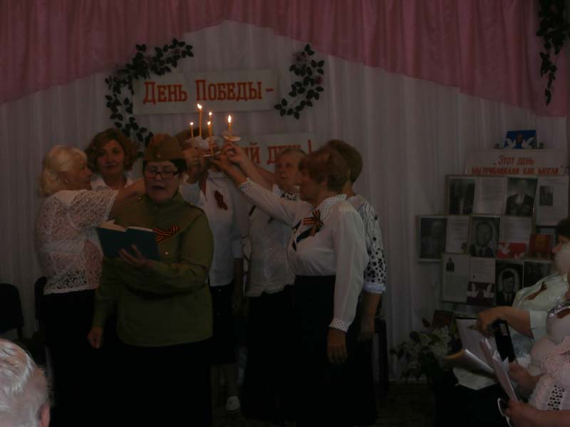 На праздничном концерте прозвучали песни военный лет «Смуглянка», «Над курганом», «Фронтовые подруги», «Парад Победы» и другие, прочитано стихотворение В. Фирсова «Вечный огонь». Стихи и военные песни, ставшие поистине народными, звучавшие на празднике, дружно подхватывал весь зал.