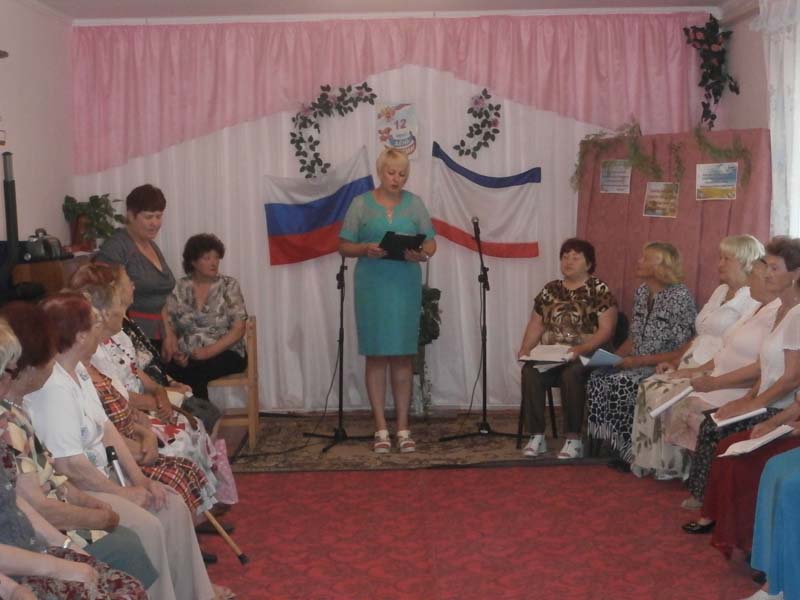 Ведущая мероприятия Раиса Галимская поздравила получателей социальных услуг с Днем России, рассказала историю праздника, а также отметила, что с 2002 года 12 июня отмечают под современным названием - День России.