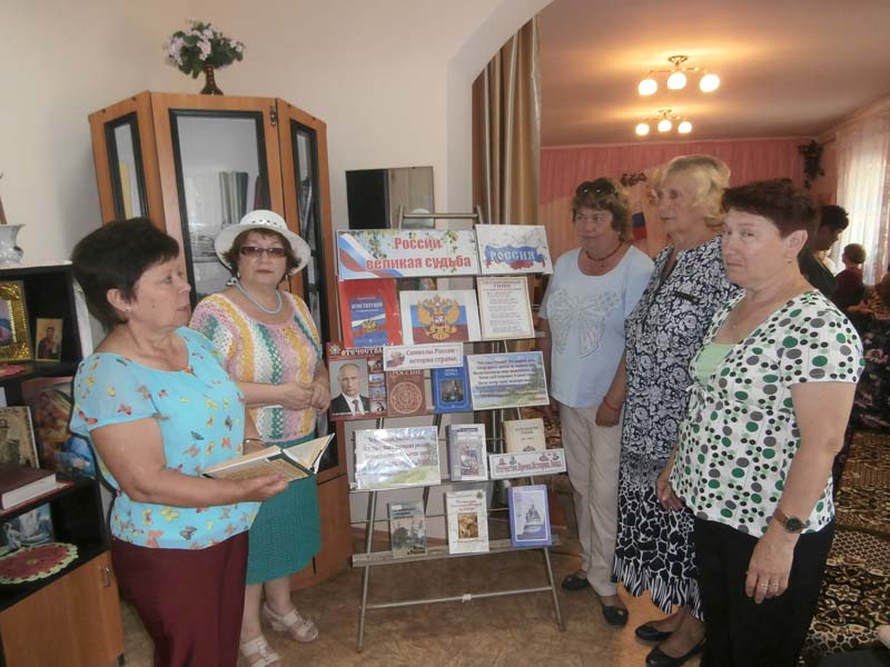 Мероприятие сопровождалось выступлением ансамбля «Беспокойные сердца», где прозвучали песни «Что может быть лучше России», «Край ты мой любимый», «Моя Москва» и другие. Оформлена выставка книг «России - великая судьба».