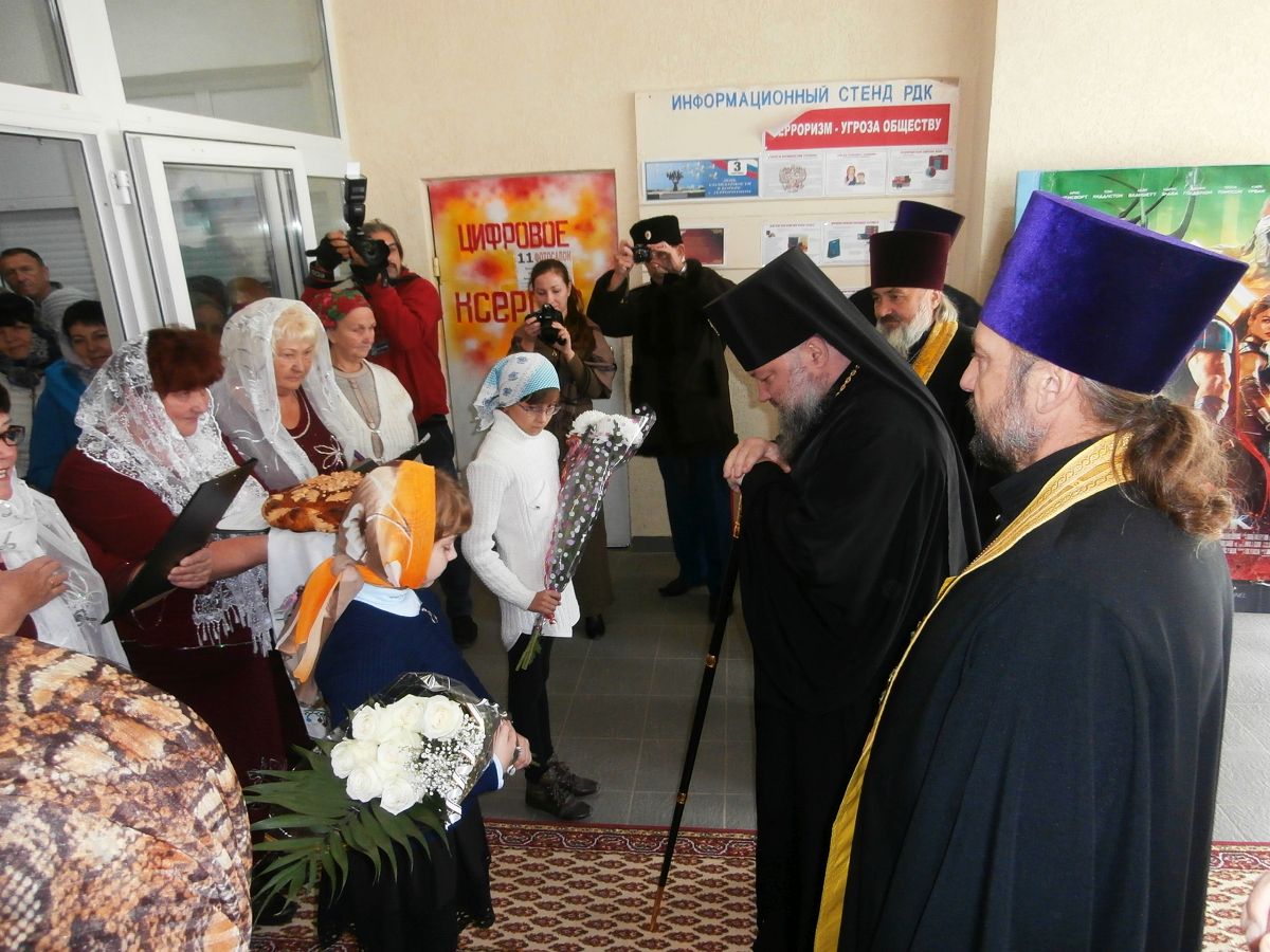Первыми высокого гостя встречали активисты из числа получателей социальных услуг отделения дневного пребывания граждан пожилого возраста и инвалидов ГБУ РК "ЦСО Раздольненского района". С приветственной речью к Архиепископу обратилась Раиса Галимская, культорганизатор отделения дневного пребывания. Нина Биссикинова исполнила песню "Боль молитвы".