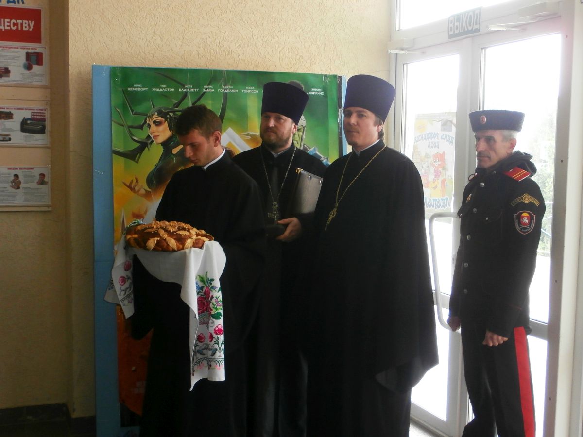 Перед началом Рождественских образовательных чтений в фойе Центра культуры, досуга и библиотечного обслуживания п. Раздольное прошел молебен с участием всех присутствующих священнослужителей.