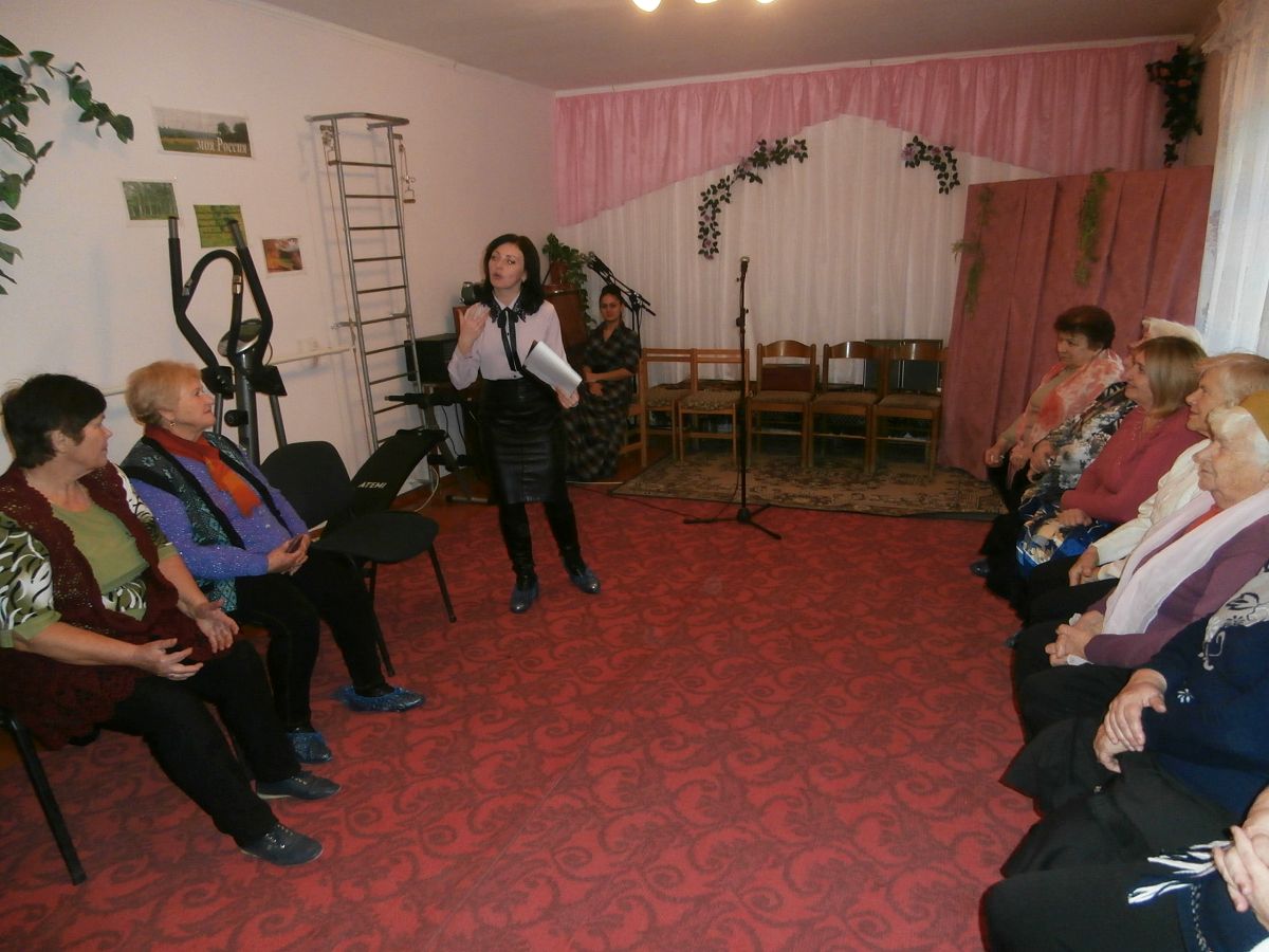 Под руководством ведущей Ольги Дубнюк гости отвечали на шуточные вопросы, отгадывали загадки, вспоминали пословицы и поговорки. Веселые конкурсы чередовались с выступлениями Инны Сейтмамбетовой, которая исполнила несколько зажигательных песен. Песни в исполнении Инны были зажигательными в самом прямом смысле слова — гости мероприятия, люди почтенного возраста, не смогли усидеть на месте, пустились в пляс и всем показали, что "есть еще порох в пороховницах"!