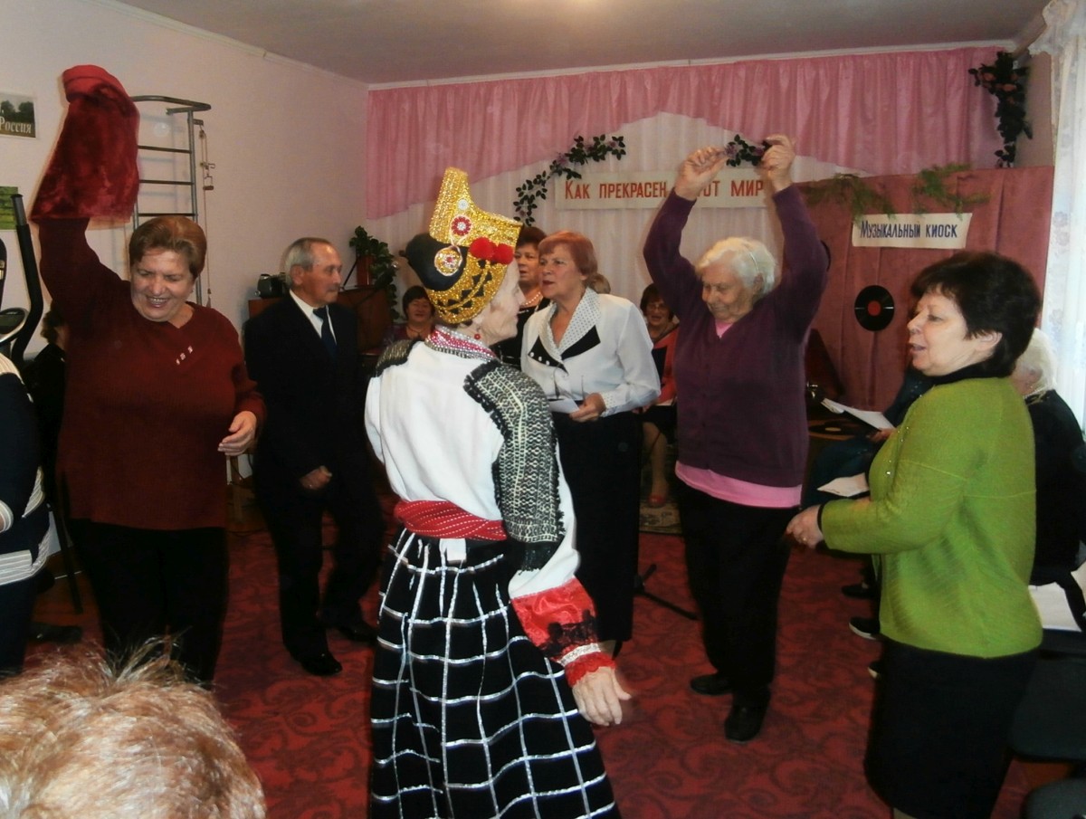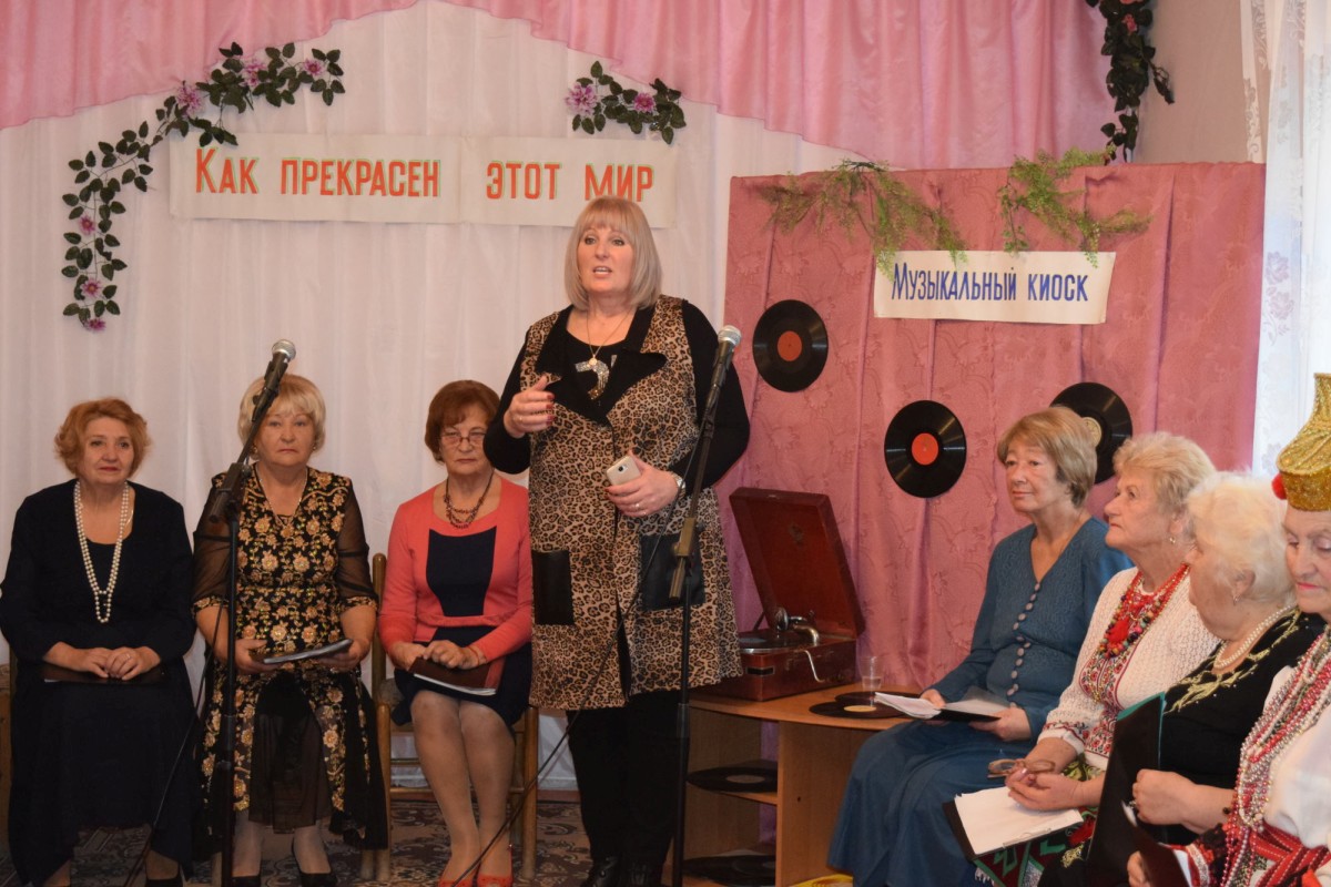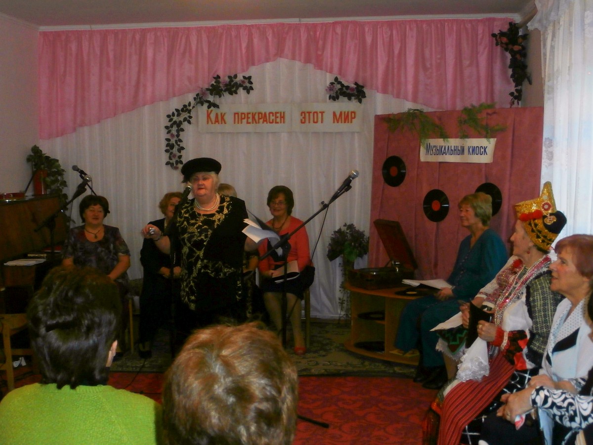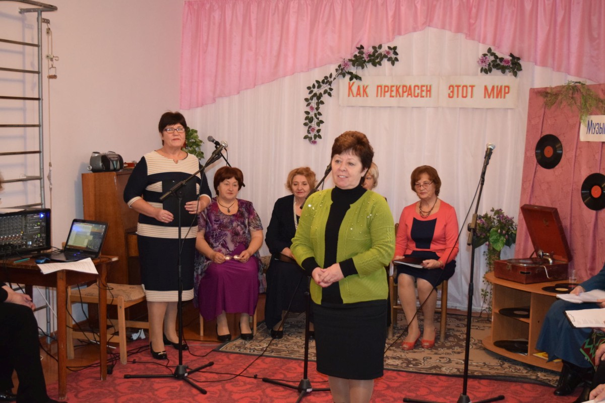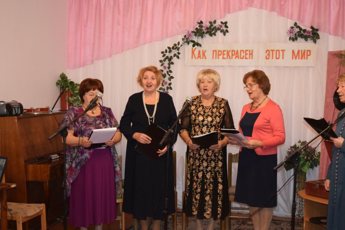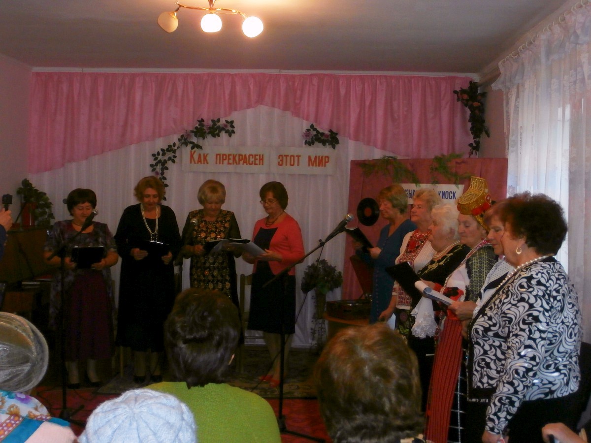 В этот день звучало много хороших песен — песен, которые до сих пор помнят люди почтенного возраста, посетившие это мероприятие: «Ой цветет калина в поле у ручья», «Замечательный сосед», «Весна на заречной улице», «Червона рута», «Крутится-вертится шар голубой», «Листья желтые» и еще многие-многие другие… Некоторые мелодии были настолько зажигательными, что все присутствующие пускались в пляс — например, «Морячка» в исполнении Галины Павловны Погорелко — старейшей участницы ансамбля «Беспокойные сердца».