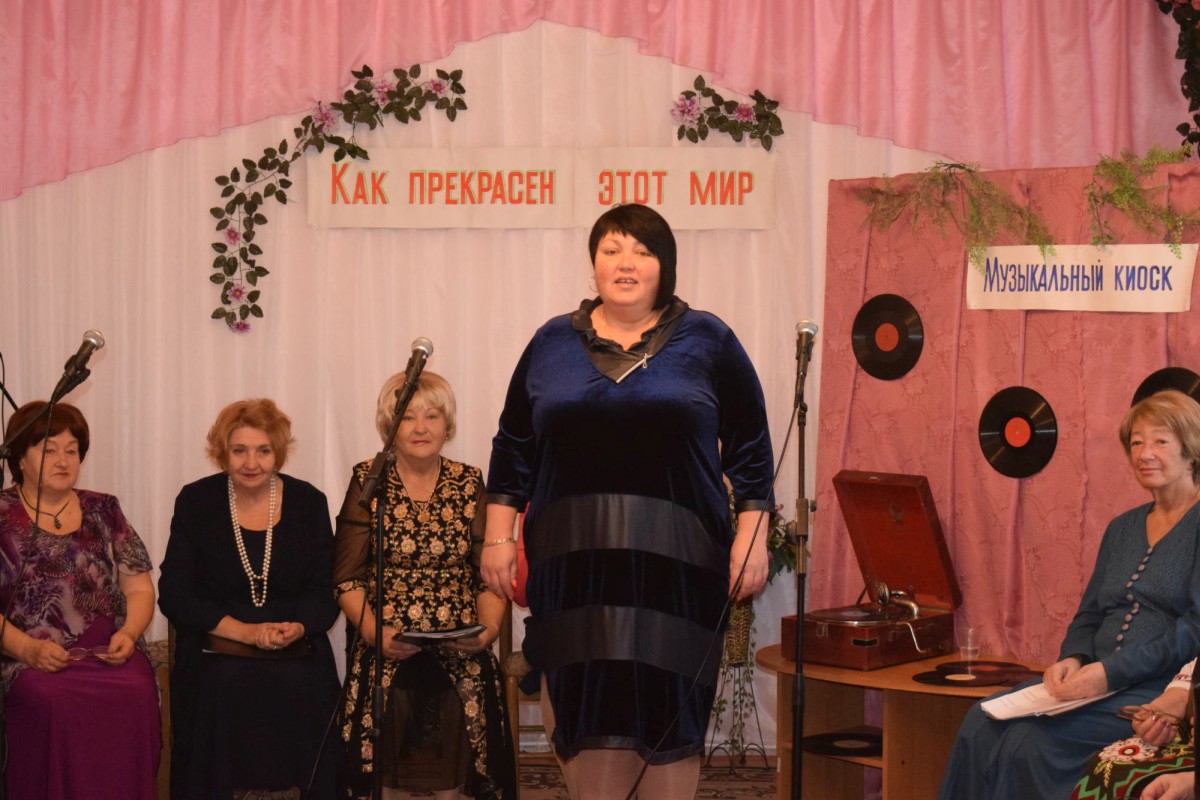 По окончании официальной части встречи началась часть музыкальная, и в стенах Центра социального обслуживания впервые звучал патефон — настоящий раритет 1935 года выпуска, сохранившийся в рабочем состоянии до сегодняшнего дня. Свою семейную реликвию для проведения мероприятия предоставила нашему ЦСО жительница поселка Раздольное Валентина Ивановна Шесточенко. Именно этот поступок Валентины Ивановны вдохновил нас выбрать тему музыкальной части этой встречи: «Песни в стиле «Ретро».