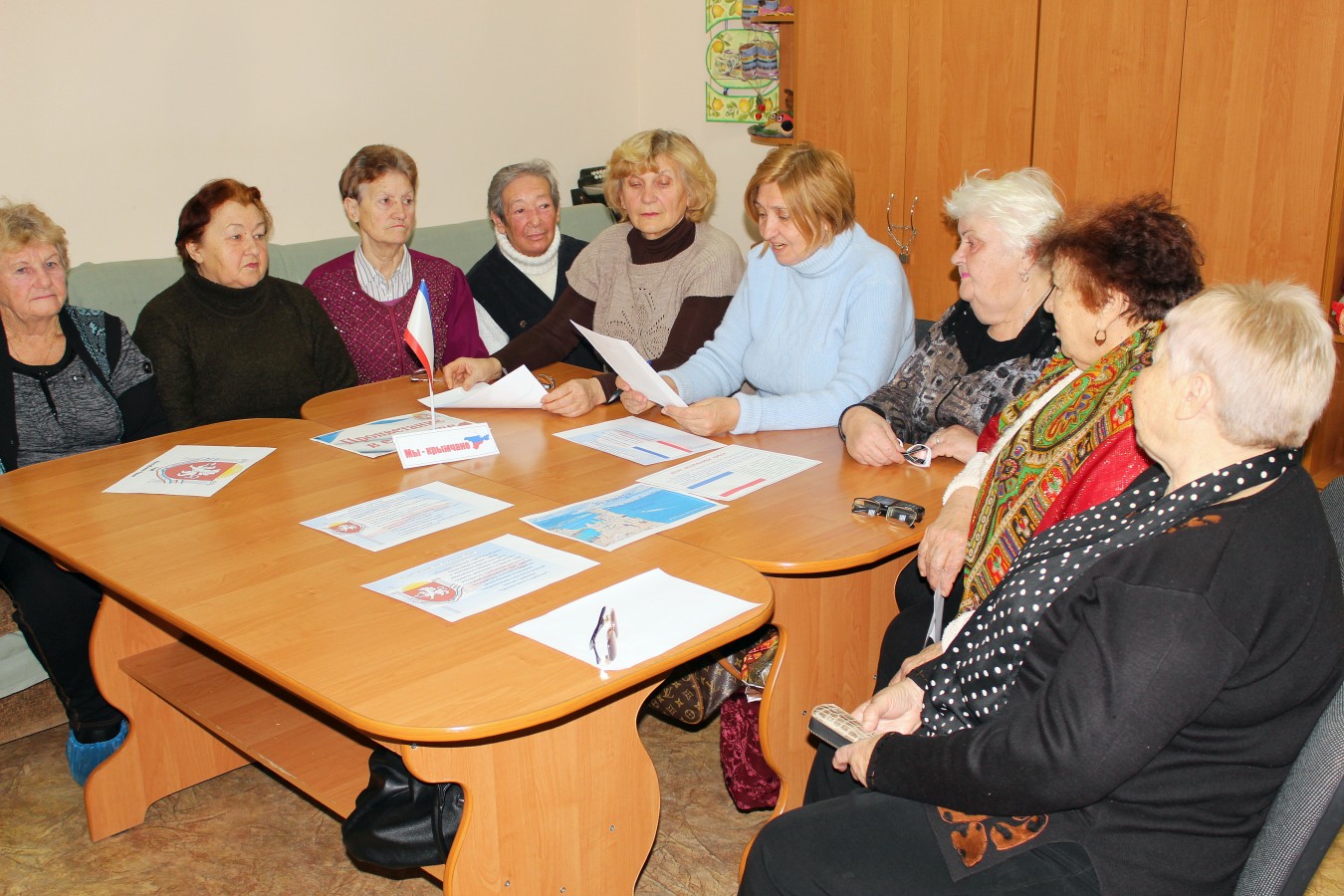 18 января 2018 года в отделении дневного пребывания граждан пожилого возраста и инвалидов ГБУ РК «ЦСО Раздольненского района» состоялась встреча-беседа, приуроченная ко Дню Республики Крым. Культорганизатор Раиса Галимская рассказала присутствующим о прошлом и настоящем Крымского полуострова, об истории появления праздника — Дня Республики Крым, о государственной символике Крыма.