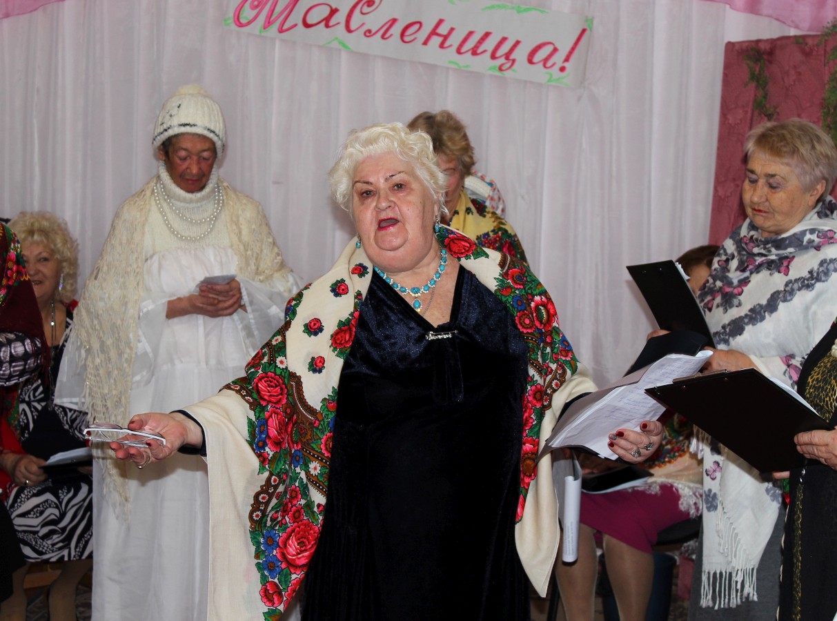 Культорганизатор Раиса Галимская рассказала об истории праздника, о народных традициях, связанных с масленицей. После этого на сцене появились ряженые «Скоморохи», которые развлекали зрителей различными шутками, загадывали загадки, проводили игры и конкурсы. В постановке также принимали участие «Зима», «Вьюга», «Весна» и другие сказочные персонажи. В исполнении артистов прозвучало много известных, любимых в народе песен: «Кабы не было зимы», «Вьюга по полю гуляет», «Весна-красна» и другие, а скоморохи веселили народ задорными частушками.