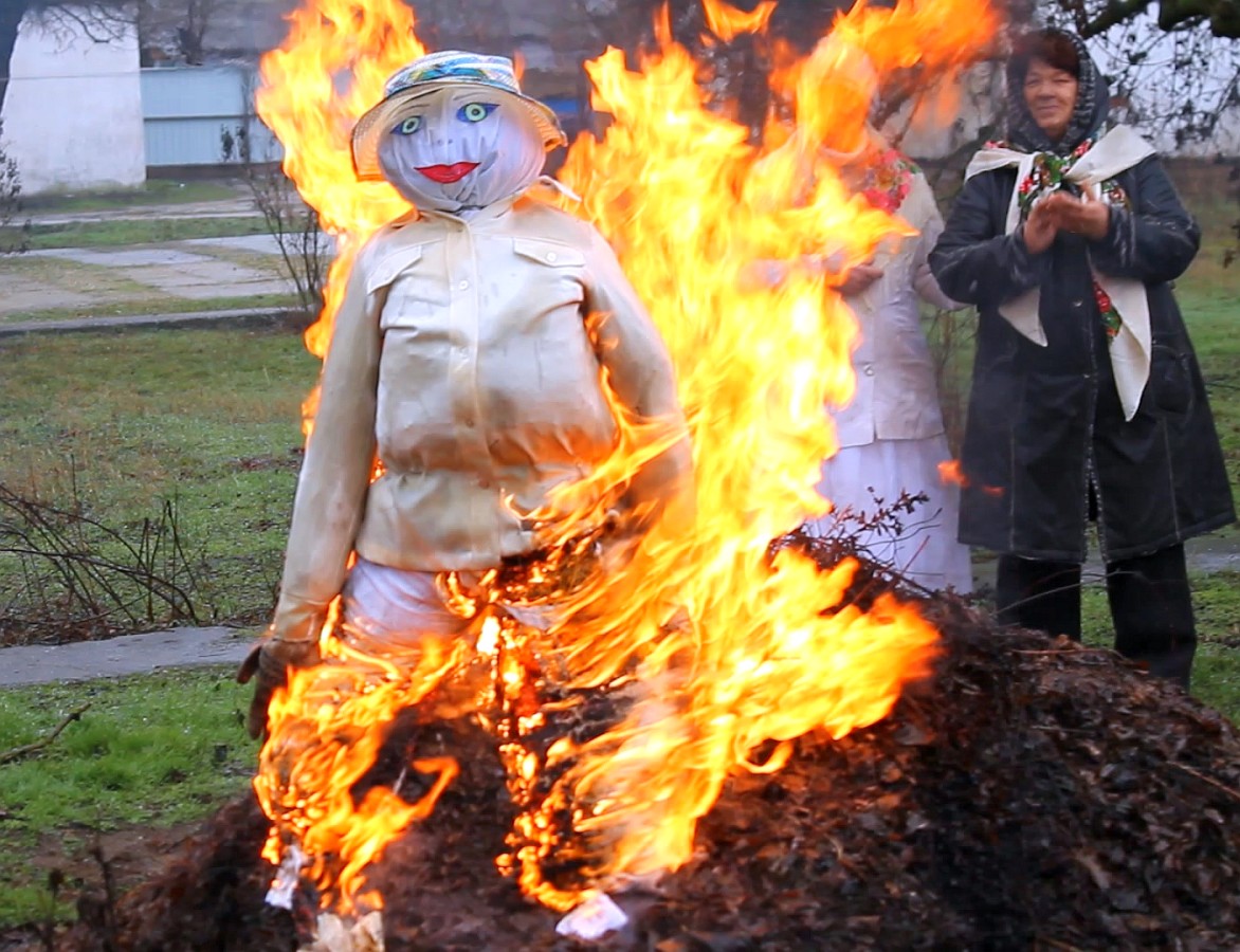Праздник продолжился уже на улице, где все участники и гости водили хоровод вокруг чучела «масленицы», после чего, согласно многовековой традиции, чучело сожгли.