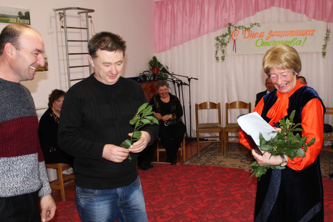 В этот день было сказано много добрых, теплых и искренних слов в адрес мужчин — настоящих воинов, готовых по первому зову стать на защиту своей Родины. С наступающим праздником всех присутствующих мужчин — получателей социальных услуг и работников Центра социального обслуживания — поздравили директор ГБУ РК «ЦСО Раздольненского района» Ольга Варнакова, заведующий отделением дневного пребывания Оксана Красовская, культорганизатор Раиса Галимская.