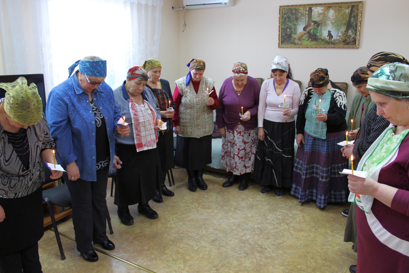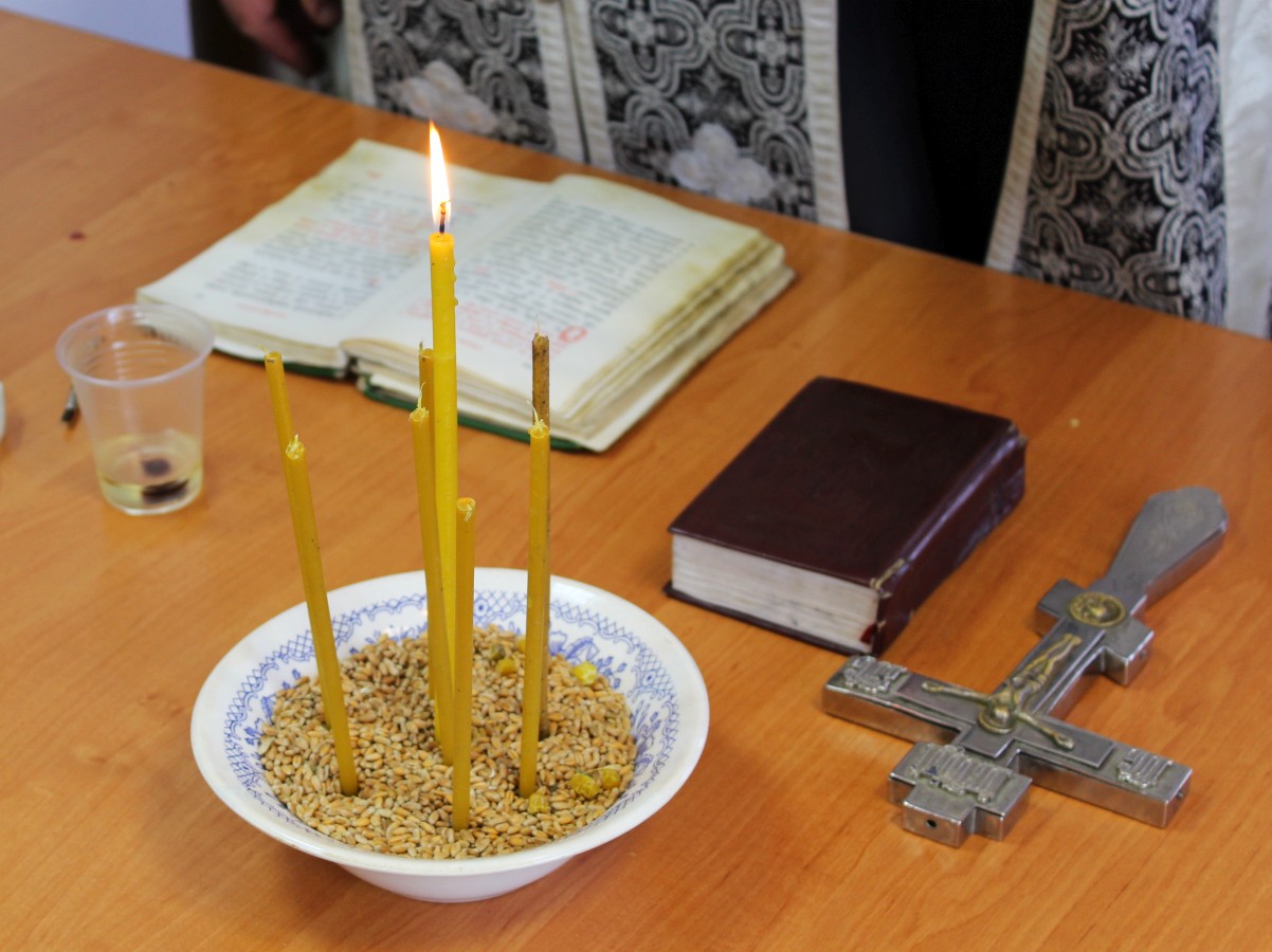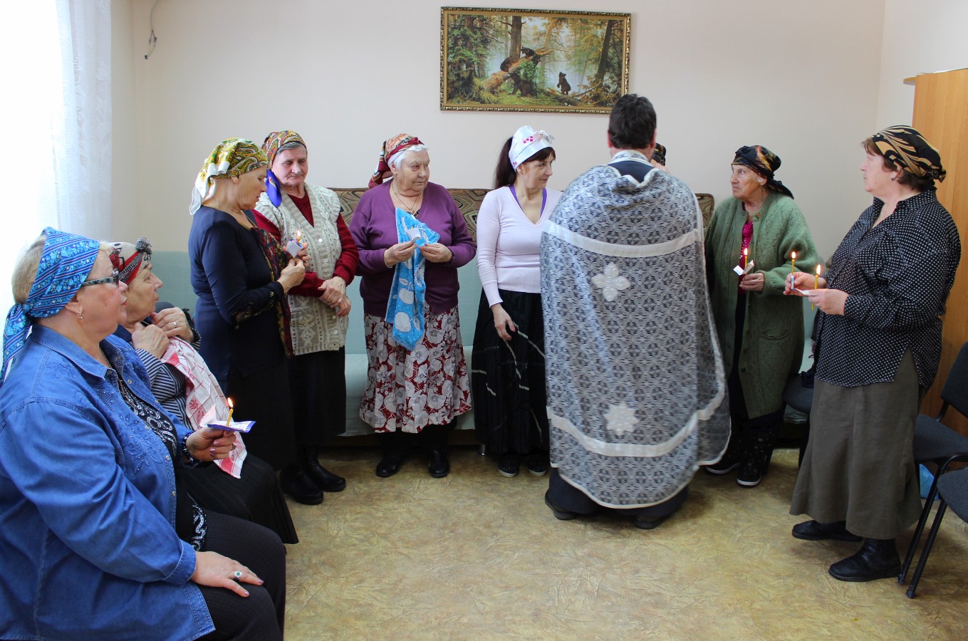 В те дни, когда Центр социального обслуживания посещает отец Олег, в отделении дневного пребывания бывает особенно многолюдно. В этот раз священник совершил Таинство Соборования, по-другому именуемое Елеосвящение.