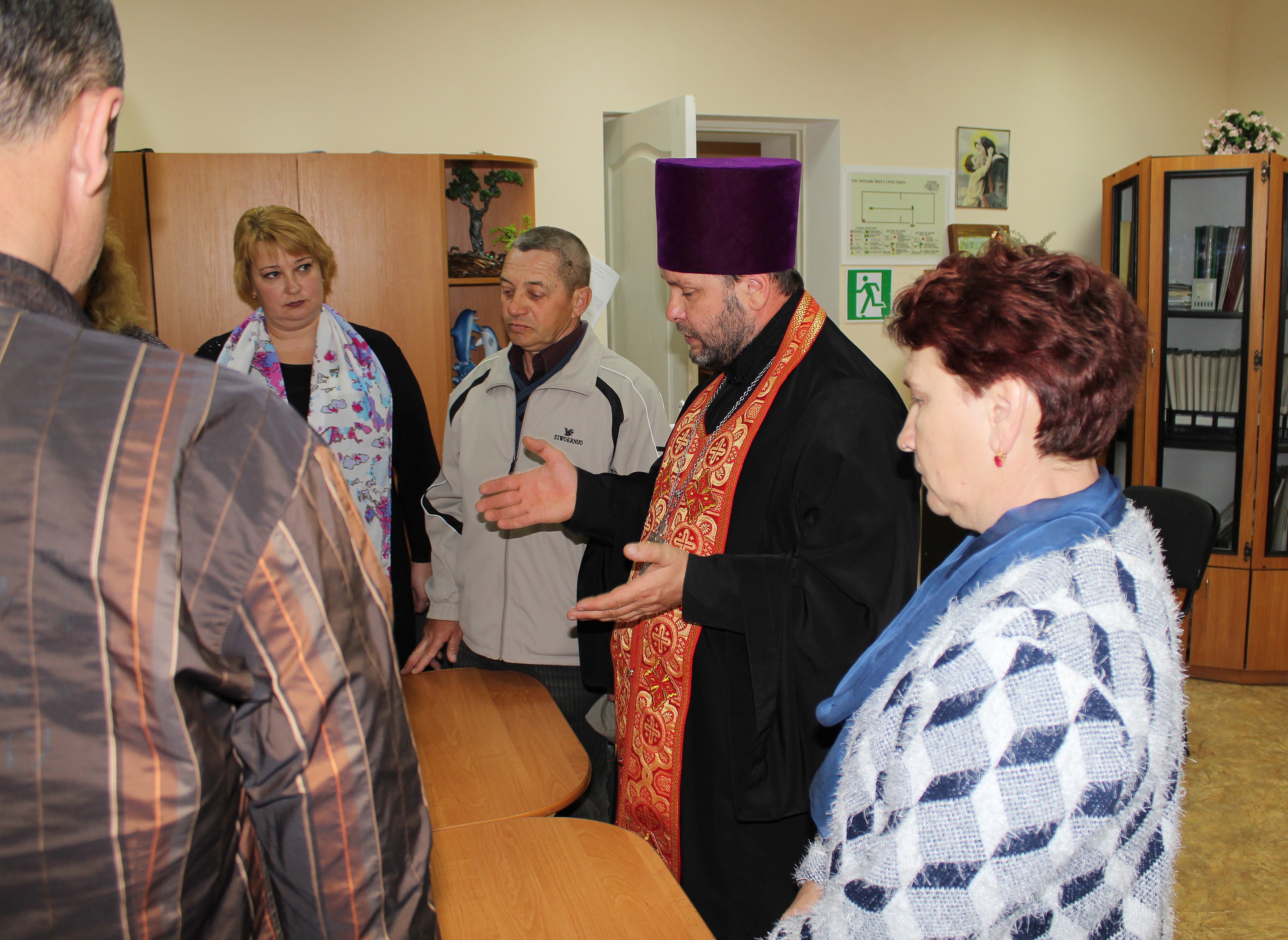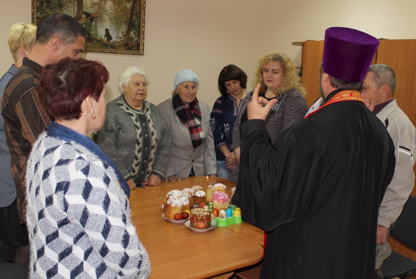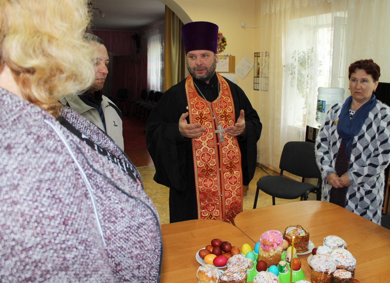12 апреля 2018 года в отделении дневного пребывания граждан пожилого возраста и инвалидов ГБУ РК «ЦСО Раздольненского района» состоялась встреча получателей социальных услуг и сотрудников Центра со священником церкви Св. Тихона Московского иереем Олегом Колбановым. Эта встреча была приурочена к прошедшему празднику Пасхи.