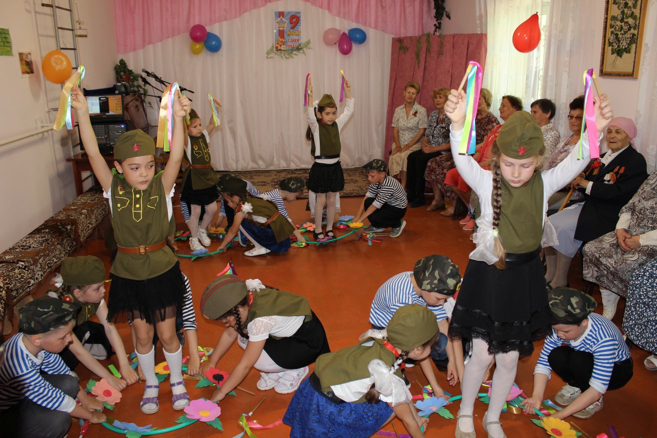 Юные артисты подготовили очень яркую и насыщенную программу — здесь были и патриотические стихотворения, и военные песни, и танцевальные номера. Каждый номер, каждое выступление вызывало радость и улыбку на лицах пожилых людей. Все присутствующие на концерте получили массу ярких впечатлений и положительных эмоций, которые позволят им надолго сохранить бодрость духа.