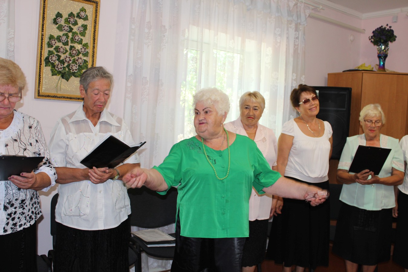 Поздравления и выступления гостей праздника органично чередовались с музыкальными номерами в исполнении серебряных волонтеров — участников вокального ансамбля «Беспокойные сердца» и солистов — Нины Биссикиновой, Елены Фаустовой, Людмилы Войтенко, Анны Шумивода и Софии Козак.