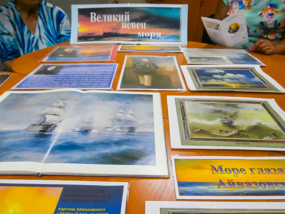 Библиотекарь Раздольненской центральной районной библиотеки имени А. И. Домбровского Галина Новикова рассказала присутствующим о жизни и творческом пути великого художника-мариниста, о его наиболее известных работах, и представила тематическую подборку книг.