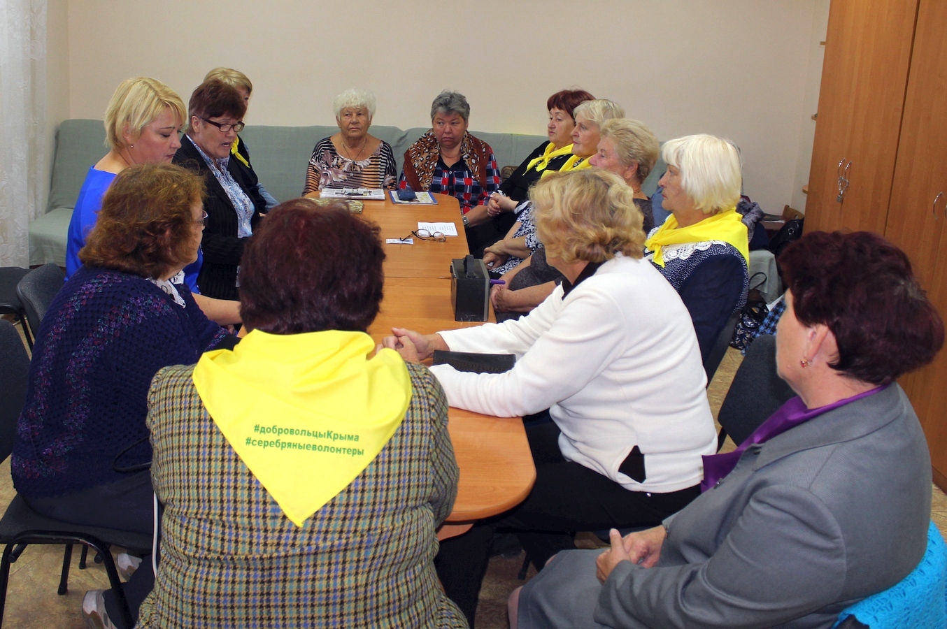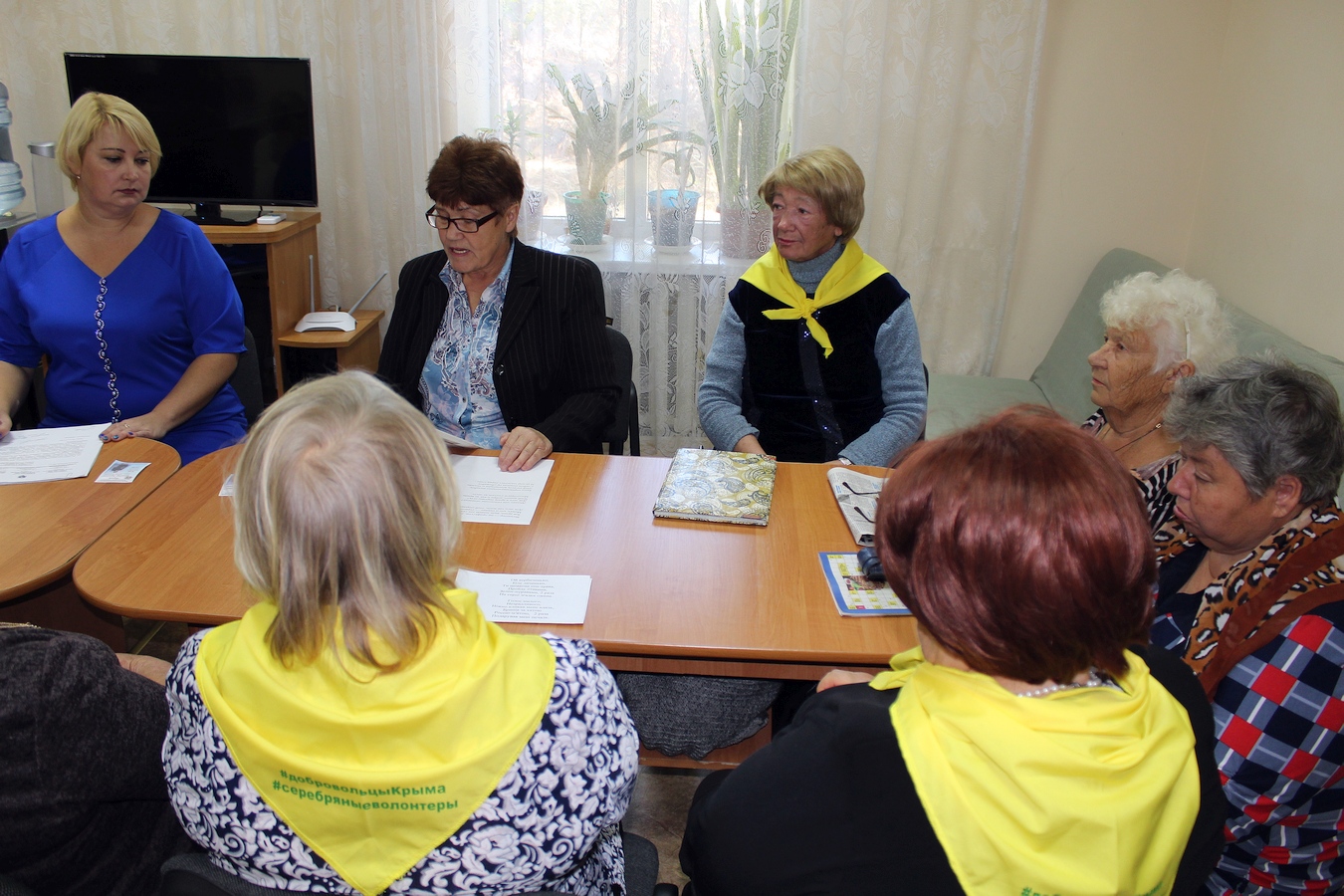 В начале встречи культорганизатор Раиса Галимская рассказала присутствующим об истории волонтерского движения, о деятельности добровольцев в России в нынешнее время, об интересных проектах, реализуемых в рамках движения «Добровольцы России». Серебряный волонтер Вера Туз рассказала о своем участии в «Первом форуме серебряных волонтеров Республики Крым», который недавно проходил в городе Симферополе, о вопросах, которые обсуждались на этом форуме, о знакомстве и общении с директором Автономной некоммерческой организации социальной поддержки пенсионеров «Объединение серебряных волонтеров» (г. Сочи) Верой Сакаевой.