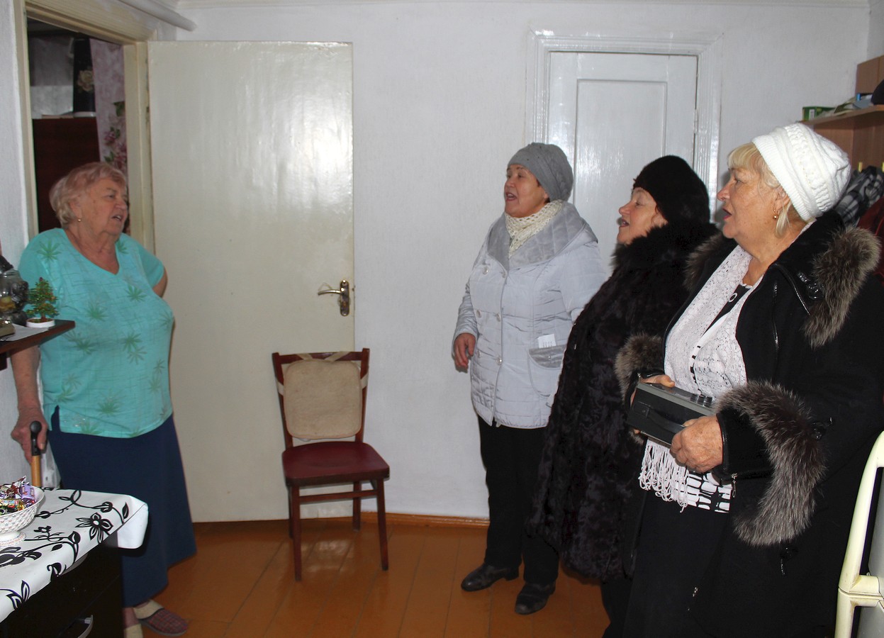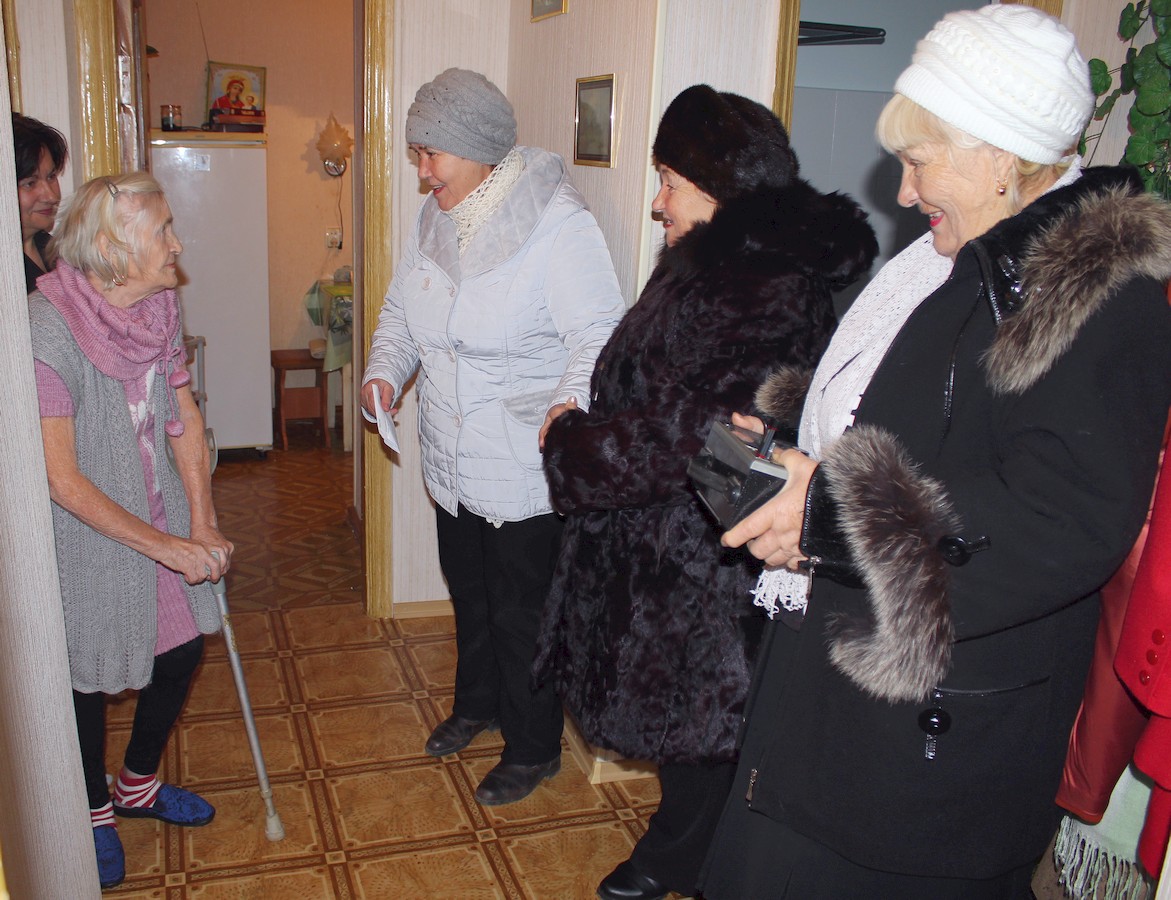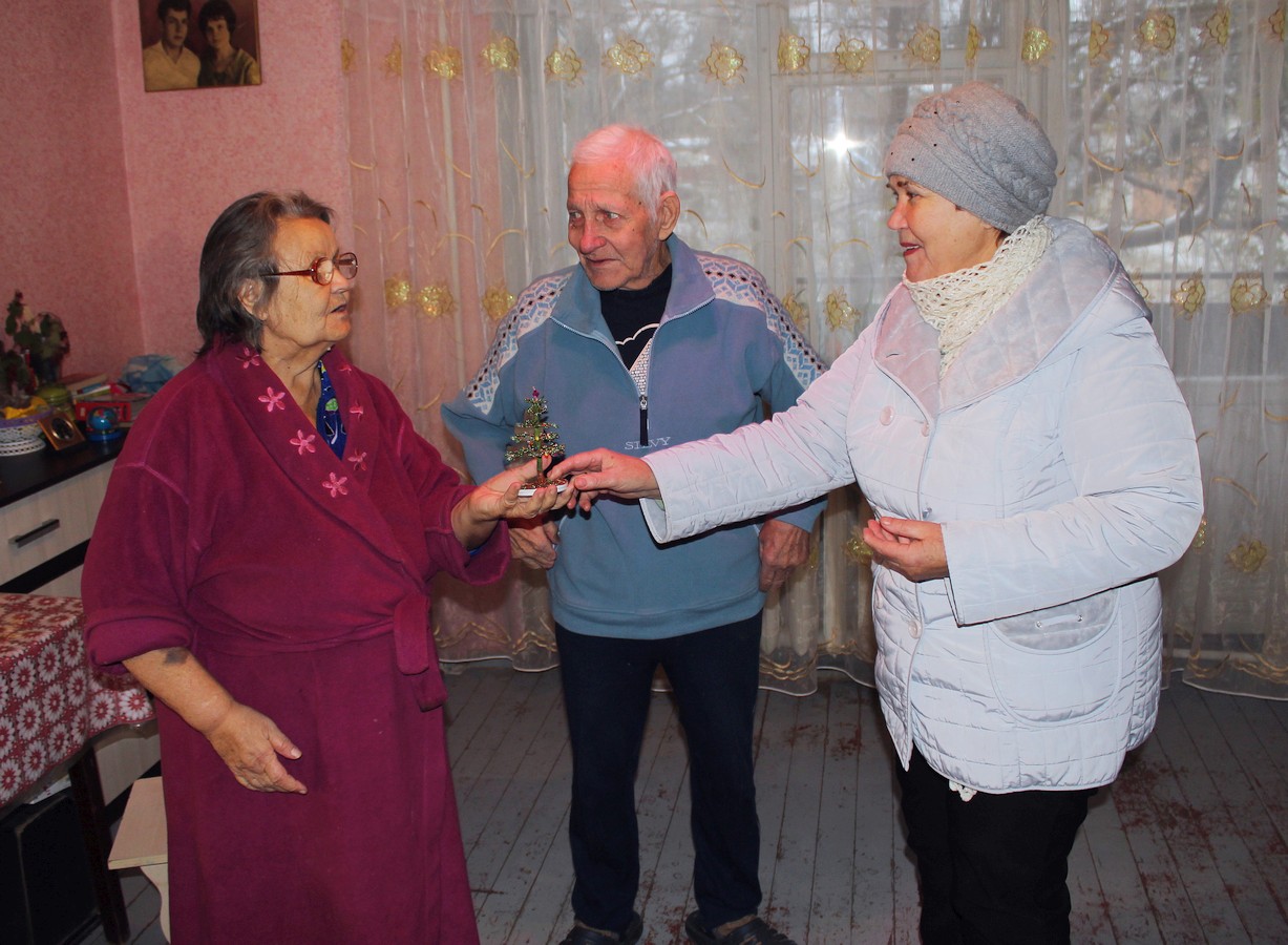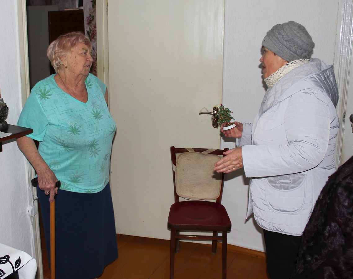 С радостными улыбками встречали гостей на пороге своего дома получатели социальных услуг. В этот день в их домах звучали только хорошие, добрые слова и пожелания, ну и конечно же — душевные песни! Раиса Сергеевна вручала пожилым людям скромные подарки — сувениры в виде новогодних ёлочек, изготовленные умелыми руками мастериц в кружке рукоделия «Сундучок». Каждому гости устраивали мини-концерт, исполняя песни: одни — веселые и задорные, другие — лирические и душевные… Слезы радости блестели на глазах пожилых людей — это мероприятие никого не оставило равнодушным.