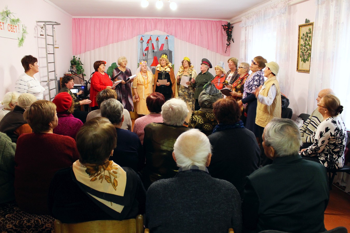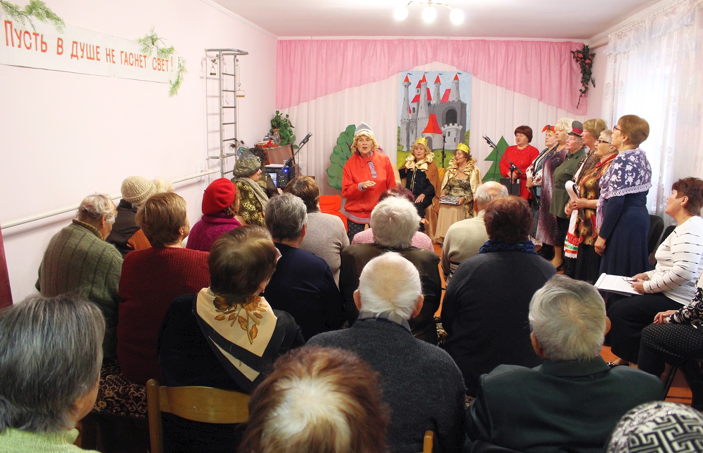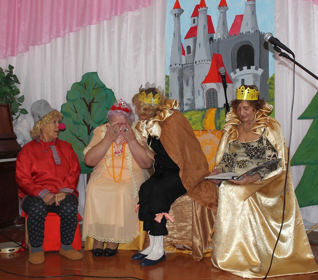 Серебряные волонтеры и участники вокального ансамбля «Беспокойные сердца» создали оригинальную музыкально-театральную постановку на основе русских народных сказок. Действующими персонажами постановки стали Царевна Несмеяна, которую мастерски сыграла Людмила Войтенко, царь с царицей (Ольга Чиркова и Елена Мощевитина), придворный шут (Елена Фаустова), Яшка-артиллерист и Дормидонтовна (герои кинофильма «Свадьба в Малиновке» в исполнении Анны Шумивода и Софии Козак), «восточный султан» (библиотекарь Раздольненской ЦРБ им. А. И. Домбровского Галина Новикова), «простой работник» (Зинаида Коркина), «старушка» (Анна Чорная), и, конечно же, вокальный ансамбль «Беспокойные сердца» в полном составе. Во время финальной сцены спектакля многие зрители не смогли удержаться и вышли плясать вместе с артистами под зажигательные песни «Беспокойных сердец».